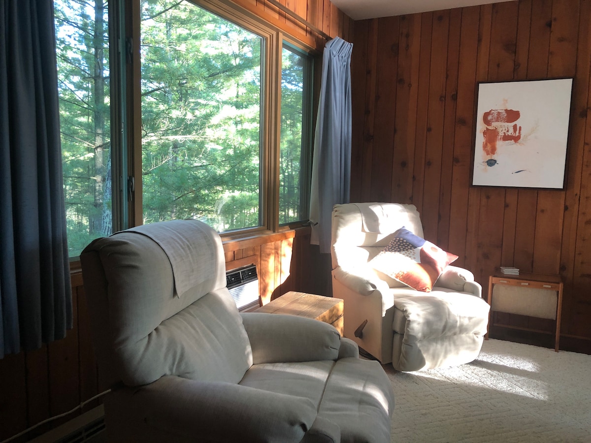 Tämä on kahden makuuhuoneen ja kahden kylpyhuoneen kohde rauhallisessa ympäristössä, ja moniin paikallisiin mukavuuksiin on läheinen pääsy. Yhdessä makuuhuoneessa on king-vuode, toisessa queen-vuode, ja olohuoneessa on queen-vuode ja kahden hengen vuodesohva. Täysin uudistettu keittiö. Suuri terassi metsään päin grillillä ja nuotiopaikalla. Sijaitsee Bearskin Trail -reitillä kävelyä, pyöräilyä ja lumikelkkailua varten! Lähellä monia järviä ja nähtävyyksiä. Helppo pääsy valtatieltä, mutta hiljaisella umpikujalla. Ilmainen WiFi/älytelevisio. Oletko valmis tekemään muistoja!