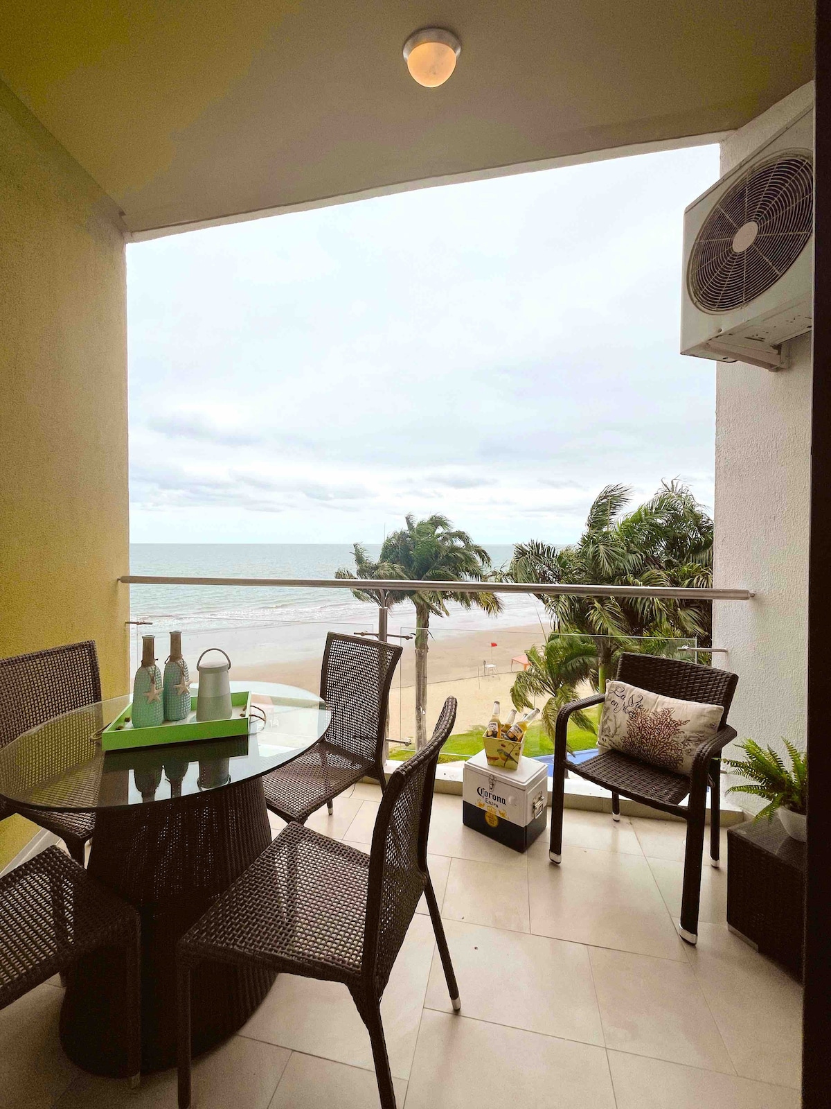 Oceanfront suite with internet service; located in Tonsupa-Esmeraldas in Playa Azul Resort, fully equipped with American type kitchen. Taulutelevisio, jossa on Directv-palvelu, sisältää hinnan. Kaksi vuodesohvaa. Huone, jossa on king-vuode, 2 kylpyhuonetta, suuri parveke, jossa on pajuhuone, ja vintage-tyylinen ruokasali, jossa voit nauttia aamiaisesta ja lounaasta, josta on näkymä merelle. Arvosta sitä, pidä siitä huolta ja nauti jokaisesta yksityiskohdasta.