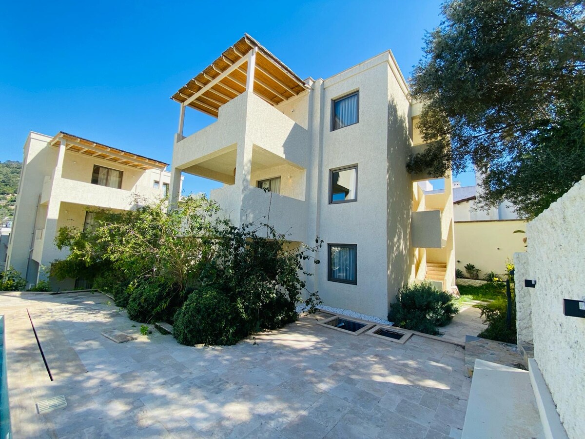 Modernisti sisustettu huoneistoni sijaitsee täydellisesti luonnonkauniilla kukkulalla vain 1 km:n päässä Bodrumin keskustasta. Täysin kalustettu ja yhteinen uima-allas. Toivotan sinut tervetulleeksi huoneistooni aidatussa asuinalueessa, jossa on ympärivuorokautinen turvallisuus.
