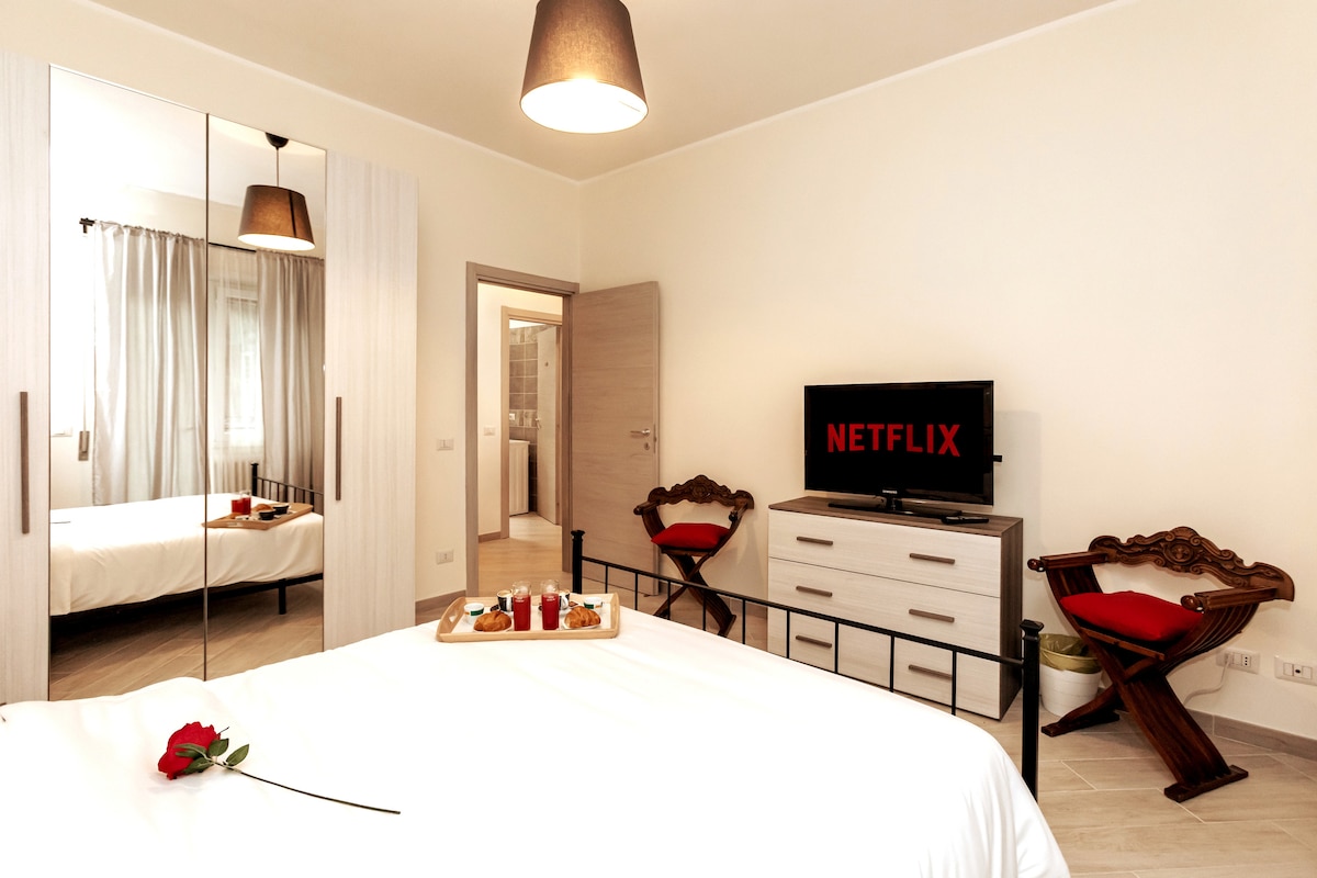 Tämä huoneisto on suunniteltu tarjoamaan mukavan majoittumisen pariskunnille, perheille tai ystäville. Huoneisto sijaitsee rauhallisessa historiallisessa rakennuksessa Esquilinossa, ja se on lähellä ravintoloita, baareja, leipomoja, supermarketteja ja erikoisliikkeitä. Helppo saavuttaa Terminien rautatieasemalta (10 minuutin kävelymatka) tai Vittorio Emanuelen metroasemalta (2 minuutin kävelymatka) ja helposti saavutettavissa useimpiin historiallisiin kohteisiin.