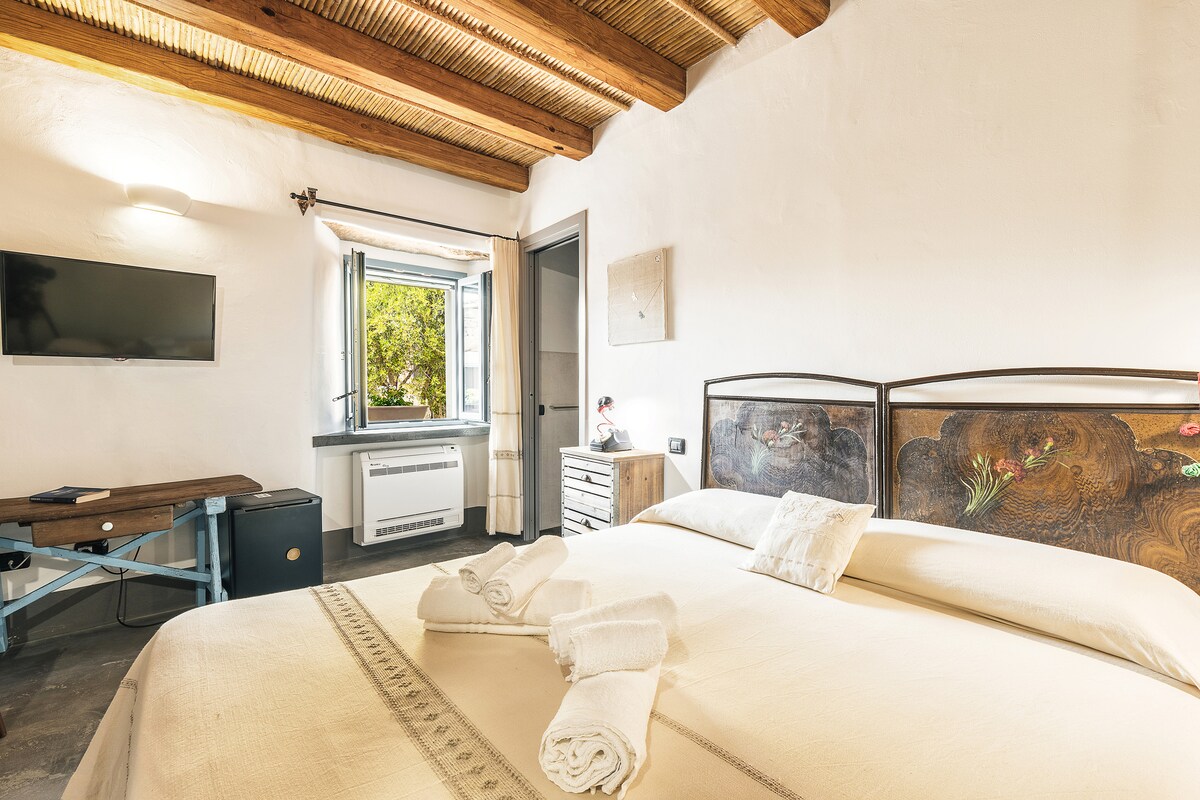 Se toivottaa sinut tervetulleeksi kahden hengen huoneeseen, jossa on ilmastointi ja ranskalainen vuode. Sisältää: TV, WiFi, liinavaatteet, hygieniatarvikkeet, italialainen itsepalveluaamiainen.