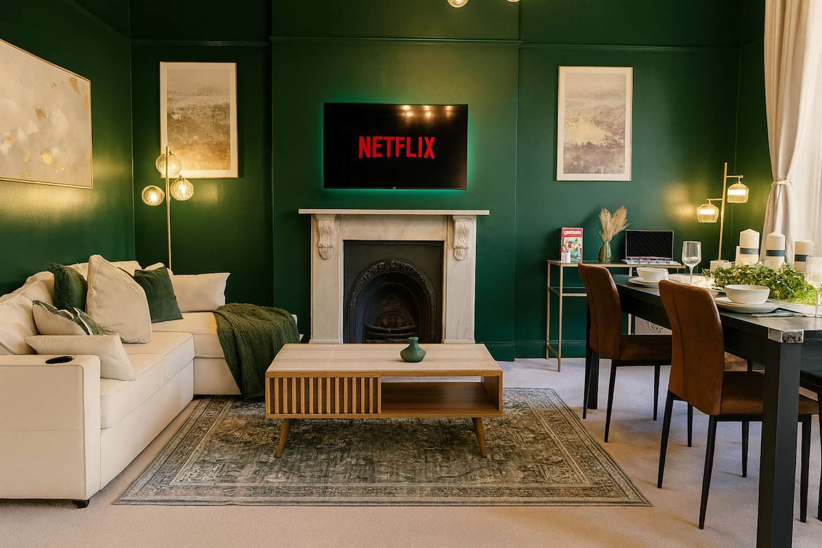 • 80 neliömetrin remontoitu 2 makuuhuoneen/1 kylpyhuoneen asunto, kirjaimellisesti 3 metrin päässä Weaver Fields Parkista. • Vaahtopatjat: 1 super king-vuode (180 cm leveä), yksi king-vuode (150 cm leveä) ja 4 lattialle asetettavaa patjaa • Ammattimaisesti siivottu 800tc liinavaatteilla, pörröisillä pyyhkeillä ja kaikilla kuviteltavissa olevilla mukavuuksilla. • WiFi (110 Mbps), älytelevisioita, langaton kaiutin, hiustenkuivaajat, Dyson-tuuletin, pesukone, kuivausrumpu ja kokin keittiö. • Metro: Bethnal Green (1 minuutin kävelymatka), Whitechapel (8 minuuttia) • Lapsiystävällinen matkasänky ja syöttötuoli