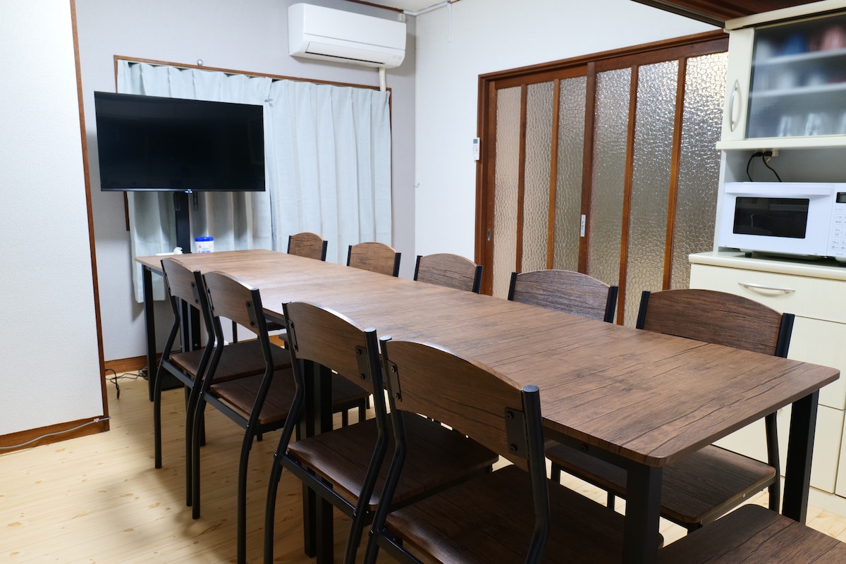 Rentoudu 50 vuotta sitten rakennetussa vanhassa talossa aivan kuin vierailisit isoäitisi talossa maaseudulla.Rentoudu japanilaistyylisessä huoneessa lainelautailun tai golfin jälkeen, grillaa puutarhassa, kokeile saunaa (erillinen maksu), jossa on luonnollinen maanalainen vesikylpy (14 °C ympäri vuoden), leiki lemmikkisi kanssa sisäpihalla, katsele kaunista tähtitaivasta yöllä tai katsele elokuvaa isolla näytöllä. 3 minuutin ajomatka ravintoloihin, 15 minuutin ajomatka supermarkettiin 10 minuutin kävelymatka merelle (uiminen ei ole mahdollista) 20 minuutin ajomatka Shin-Nichi Surf Pointiin Se on hankala paikka, mutta voit kävellä pyhäkköön. Voit myös mennä Nanohana-festivaalille ja kahviloihin 5 minuutissa autolla Grilli ja hiilipannu 2–4 hengelle: 1 000 jeniä, grilli ja liesi 6 hengelle: 1 500 jeniä, 8 hengelle: 2 000 jeniä (käteinen tai PayPay), ei siivoustarvetta, pöytäsetti sisältyy hintaan.Valmistele sytykkeet, hiilet, ainekset, mausteet jne. Saunan hinta on 4 000 jeniä (käteinen tai PayPay) 90 minuutista.Sinun on varattava etukäteen.Ota kylpypyyhkeet jne. mukaasi. Tee varaus etukäteen grillijuhliin ja saunaan. Huomaathan, että W-work-ohjelmaan vastaaminen voi kestää jonkin aikaa. Odotamme innolla tapaavamme sinut.