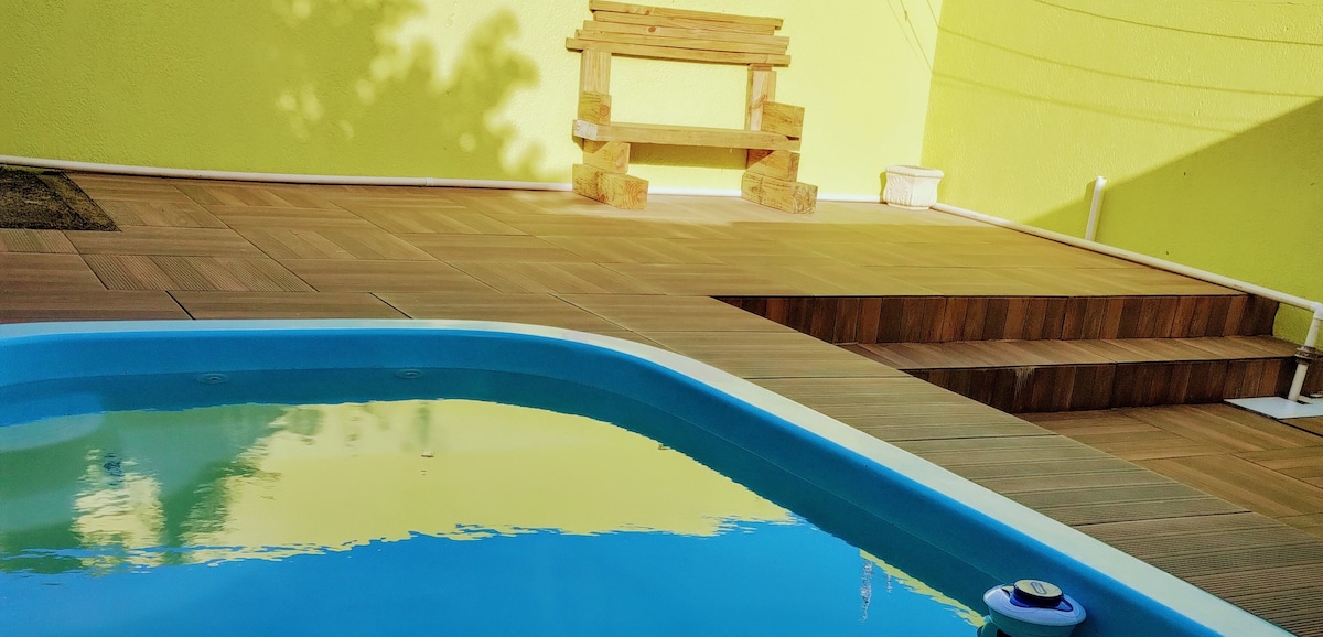 Mukava talo, jossa on uima-allas ja yksityinen patio