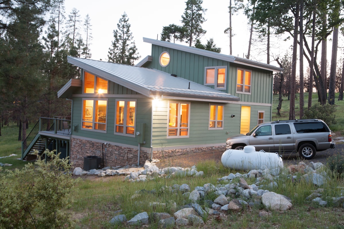 Tervetuloa The Den Aboveen, syrjäiseen moderniin lomakohteeseemme, joka sijaitsee rauhallisen Sierra National Forestin lempeän virran vieressä. Tämä äskettäin remontoitu lomakohde tarjoaa täydellisen piilopaikan niille, jotka etsivät rauhaa ja yhteyttä luontoon. Vain lyhyen tunnin maisemien keskellä kuljetun ajomatkan päässä Yosemitestä. Koiraystävällinen: 50 dollarin lemmikkimaksu, lisää koirasi vieraaksi, kun teet varauksen.
