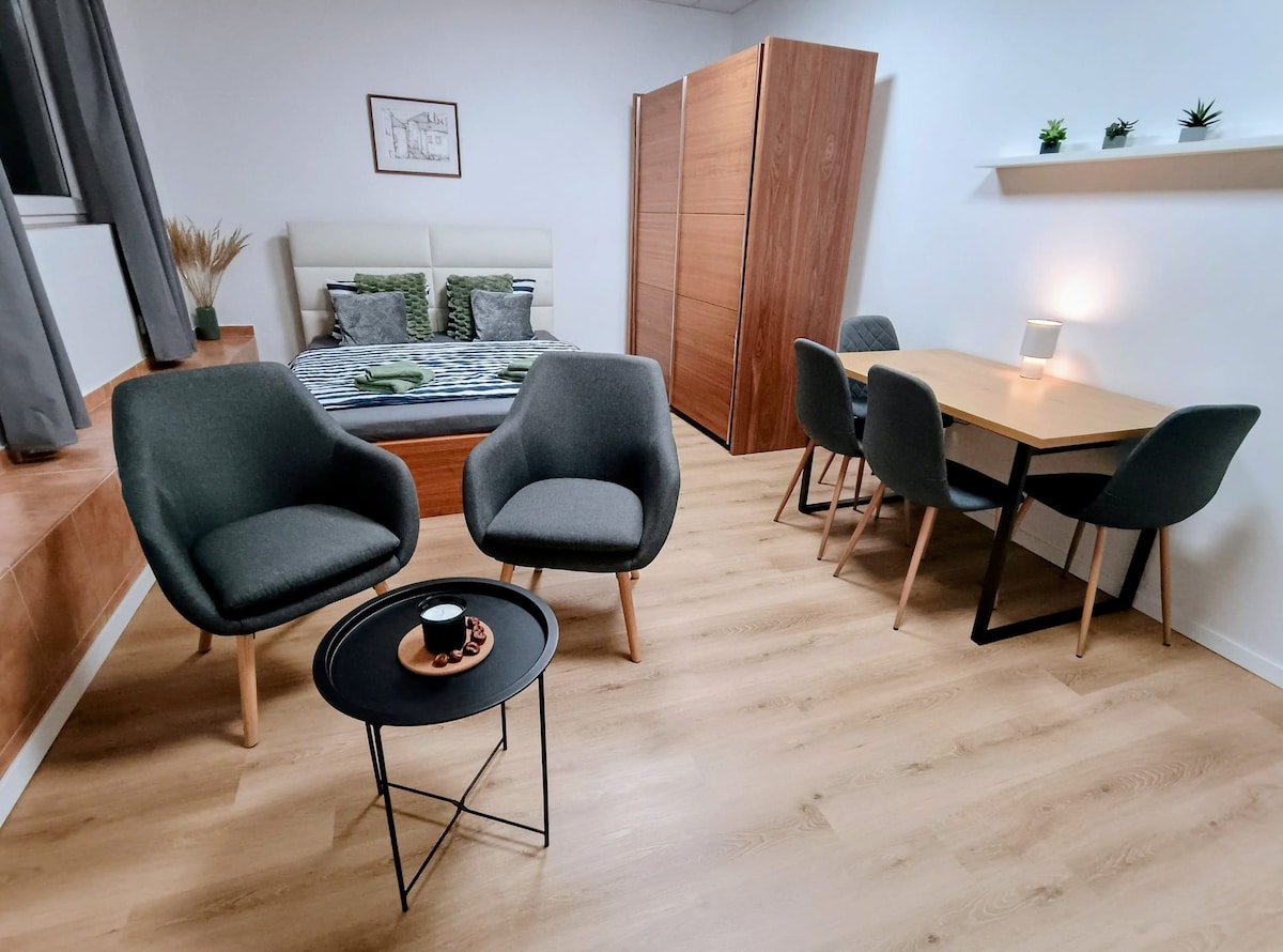 Tervetuloa pieneen, viihtyisään huoneistoon, joka sijaitsee Třebíčin juutalaiskorttelin sydämessä – Unescon maailmanperintökohteessa. Tyylikäs sisustus yhdistyy hienovaraisesti ympäristön idylliseen tunnelmaan ja vanhojen aikojen henkeen, jolloin elämä tapahtuu rauhallisemmin. Voit kävellä viehättävillä kaduilla, löytää piilossa olevia nurkkia, kävellä Jihlava-joelle, Pyhän Prokopin basilikaan, kiivetä Hrádekiin, josta on näkymä koko kaupunkiin, tai vain istua paikallisessa kahvilassa tai pubissa. Kaikki vain muutaman askeleen päässä keskustasta.