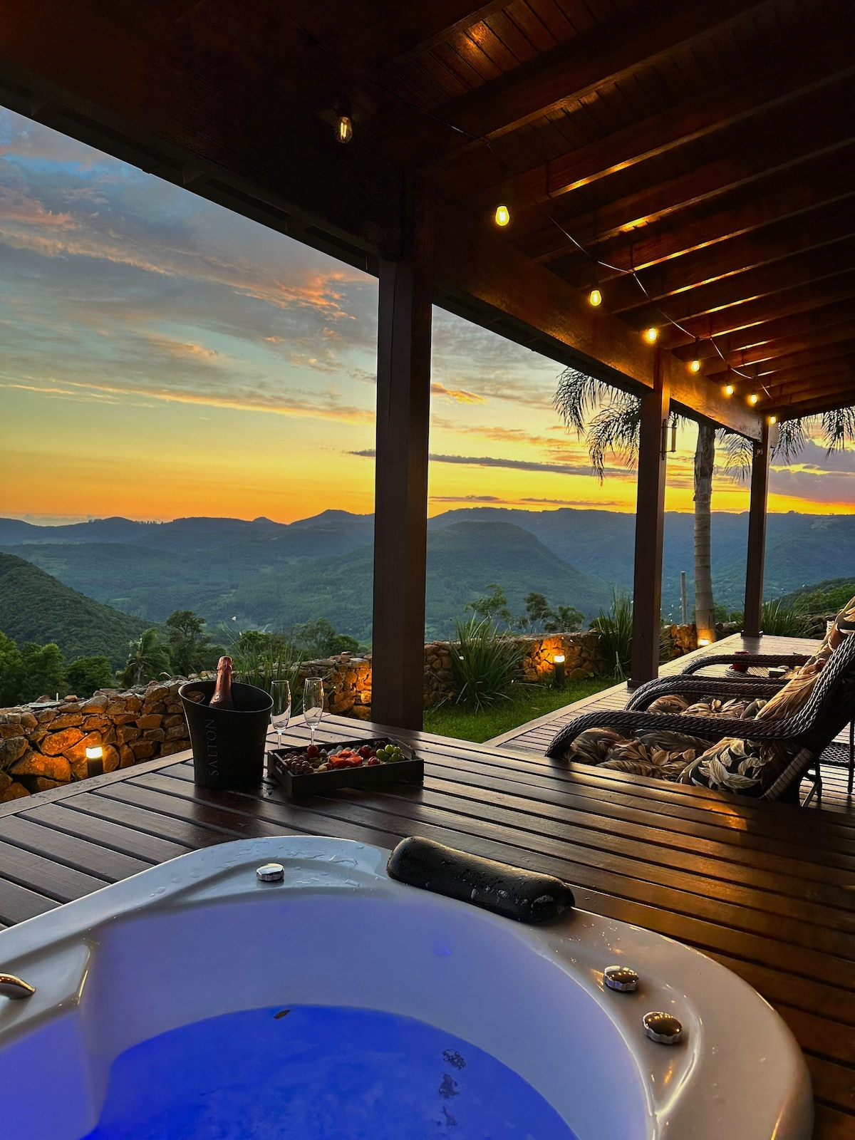 Viva uma experiência única de descanso e conexão com a natureza! Nosso chalé com hidromassagem e retroprojetor, deck com churrasqueira e ambiente acolhedor foi criado para quem busca momentos de tranquilidade, romantismo e conforto. Localizado a apenas 2 km do Templo Budista de Três Coroas, o Chalé Templo do Sol é o refúgio perfeito para casais que desejam celebrar uma data especial, curtir um fim de semana relaxante ou simplesmente desacelerar com vista para o vale e o som dos pássaros
