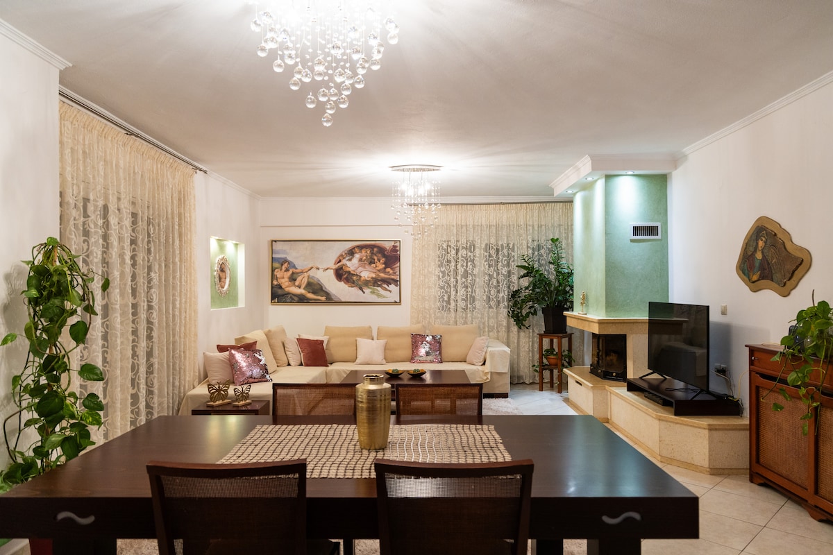 Tämä on miellyttävä, erityisen viihtyisä tila, jossa on harkittu sisustus ja intensiivisen moderni tyyli. Talossa on paljon mukavuuksia, jotka tekevät majoittumisestasi miellyttävän kokemuksen. Vehreä ympäristö yhdistettynä ainutlaatuiseen näkymään korkeimmalle huipulle tekee siitä ihanteellisen mihin tahansa vuodenaikaan. Se on 2,5 km: n päässä Karpenisin keskustasta ja vain muutaman minuutin ajomatkan päässä, kun taas sen sijainti on ihanteellinen lyhyille lomakohteille ympäröiviin kyliin ja hiihtokeskukseen.
