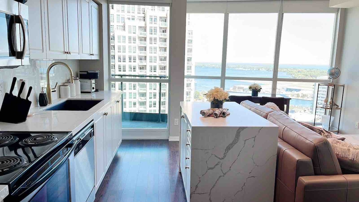 Experience downtown Toronto in a stylish condo! Start your day by enjoying coffee on the balcony. Walk to BMO Field (Toronto Stadium) - ideal for concerts, sports & FIFA events. Walk to CN Tower, Rogers Centre, Ripley’s Aquarium, Exhibition Place, restaurants & waterfront. Full kitchen, 2 desks with fast WIFI. Building features a pool, hot tub, sauna, gym, rooftop BBQ, free parking & self check-in. Discounts for 7+ nights & non-refundable bookings. Book your unforgettable Toronto stay today!