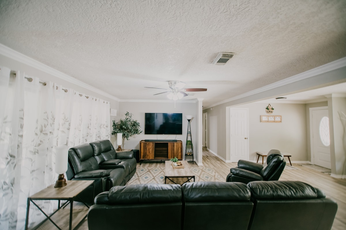 Pakene kauniiseen 3 makuuhuoneen ja 2 kylpyhuoneen kohteeseemme, joka sijaitsee rauhallisella umpikujalla ja jossa on lähes 2 eekkeriä omaisuutta nautittavaksi. Tämä avoin konseptikohde on täydellinen perheille tai ryhmille, jotka etsivät rauhallista lomakohdetta vain 10 minuutin ajomatkan päässä Lake Livingston -venerampeilta. Huomaathan, että autotallit ja huoneet, joissa on lukitut ovet, ovat yksityisiä tiloja eivätkä vieraat pääse niihin. Kiitämme ymmärtämyksestäsi.