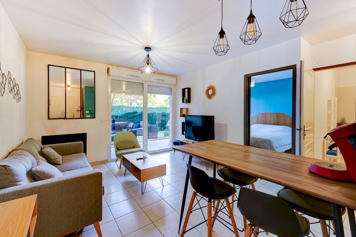 Upea 2 huoneen asunto puutarhalla 2 askeleen päässä Genevestä