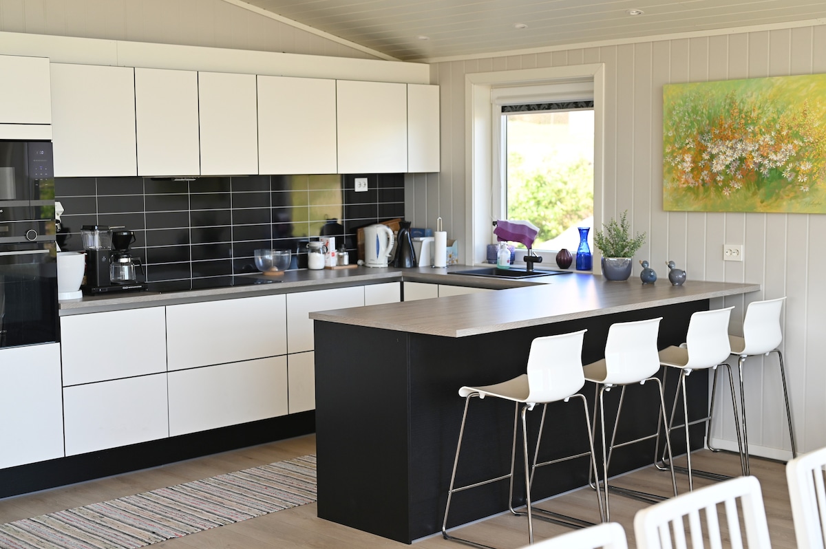 Mökkimme sijaitsee idyllisellä paikalla keskellä Raetin kansallispuistoa, ja sieltä on upeat näkymät merelle. Täällä voit nauttia kävelyistä, uintialueista ja aalloista jopa myrskyisinä päivinä. Mökki on hiljattain remontoitu, ja siellä on Sigdal-keittiö, uusi kuisti, markiisi, Weber-grilli, kaasupizzauuni, takka ja ulkotakka. Nukkuu 6 + uusi parivuodesohva, josta on upeat näkymät. Soutuvene kuuluu myös mökille, mutta sinun pitäisi olla useita nostaaksesi sen ulos. The cabin is perfect for quiet days or adventures in ocean gap and nature