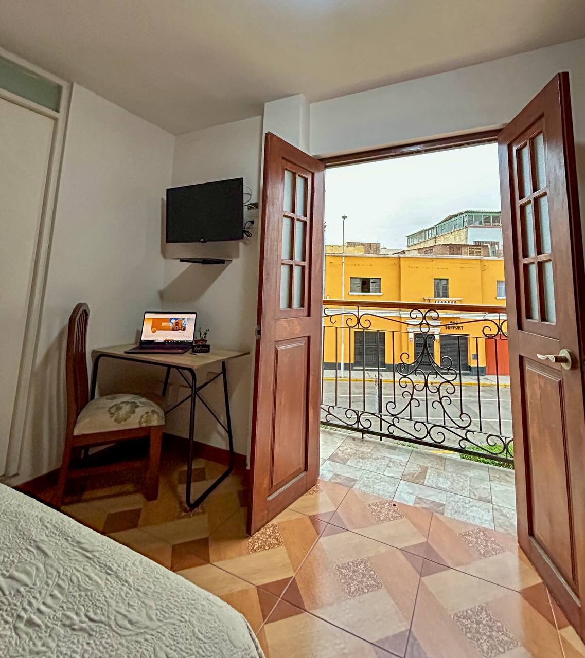 KESKITETTY, KODIKAS JA KOLONIAALINEN TYYLI. Kaikissa huoneissamme on katunäkymä, oma kylpyhuone, jossa on lämmin vesi, kaapeli-tv ja wifi, ensimmäisessä kerroksessa on kahvila vieraidemme käytettävissä (mikroaaltouuni, jääkaappi, keittiö ja täydet astiat). Olemme historiallisen keskustan sisällä ja vain 4 korttelia Trujillo-aseaukiolta, lähellä ravintoloita, pankkeja, Mansiche-stadionia, Gran Chimú Coliseumia ja Olympic Poolia. Helppo pääsy julkiseen liikenteeseen.