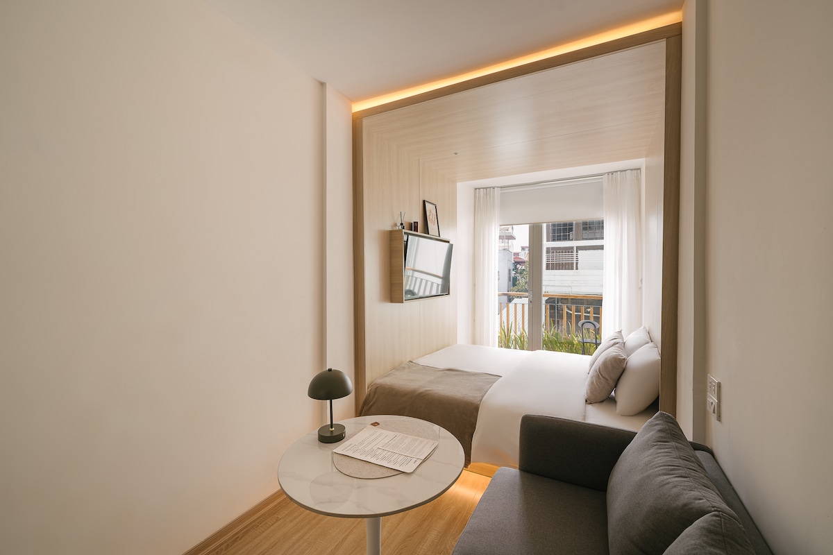 Tämä 82 m²:n huoneisto sijaitsee Hanoin ranskalaisessa korttelissa ja tarjoaa tyylikkään yhdistelmän vehreyttä ja minimalistista suunnittelua. Japanilaisen estetiikan inspiroima tila virtaa pehmeästi huoneesta toiseen, ja siellä on paljon luonnonvaloa, pehmeitä tekstuureja ja rauhoittavia sävyjä. Tilava parveke, jossa on vehreitä kasveja, kutsuu viettämään rauhallisia aamuja ja iltoja. Jokainen yksityiskohta on tarkoituksellinen – rauhallinen pakopaikka kaupungissa.