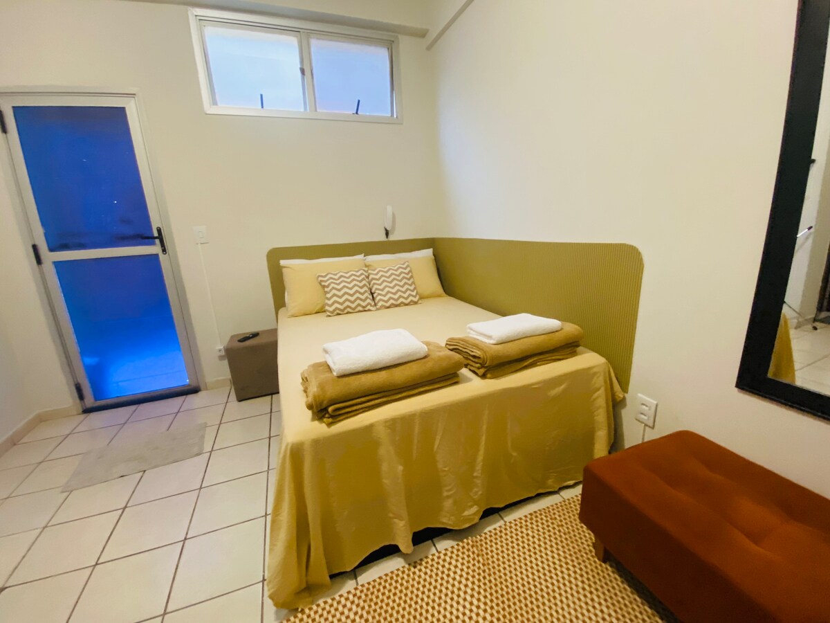 Tervetuloa viihtyisään studioomme Uberlândian parhaassa sijainnissa. Huoneessa on parivuode, yhden hengen vuode, lakanat, tyynyt, ilmastointi, TV, minibaari, mikroaaltouuni, oma kylpyhuone ja keittiön pesuallas, jossa on perusvarusteet, joten voit tuntea olosi kotoisaksi. Katettu autotalli tarjoaa turvallisuutta kameroilla ja sähköisellä portilla. Sijaitsee lähellä Sabiá-puistoa, ostoskeskusta, UFU:ta, stadionia ja helppo pääsy keskustaan ja lentokentälle, oleskelusi on käytännöllinen.