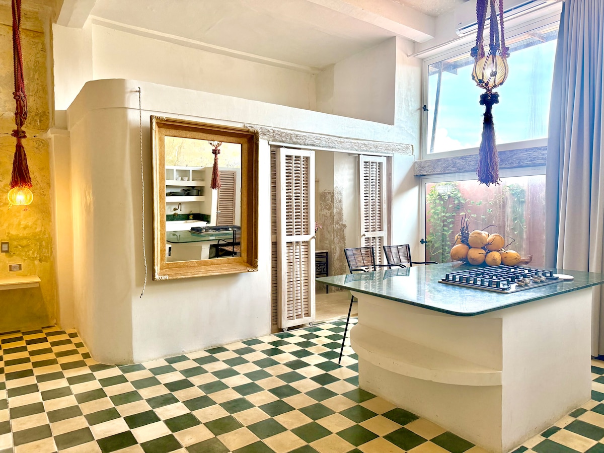 On etuoikeus majoittua 1600-luvulta peräisin olevassa kartanossa, jossa on kadulle avautuva parveke, Cartagena de Indiasin muurien sisäpuolella sijaitsevassa keskustassa. Nauti parvekkeeltasi aamukahvisi tai viinilasillisesi äärellä eturivin paikoista ikonisen Calle Santo Domingon vilkkaaseen karibialaiseen elämään. Vain muutaman askeleen päässä aukioilta, museoista, kahviloista ja kaupungin hienoimmista ravintoloista. Loft-huoneisto on upeasti kalustettu, ja se tarjoaa hienostuneen taide- ja kulttuurielämyksen, jossa historia ja mukavuus kohtaavat. Koe taika ✨