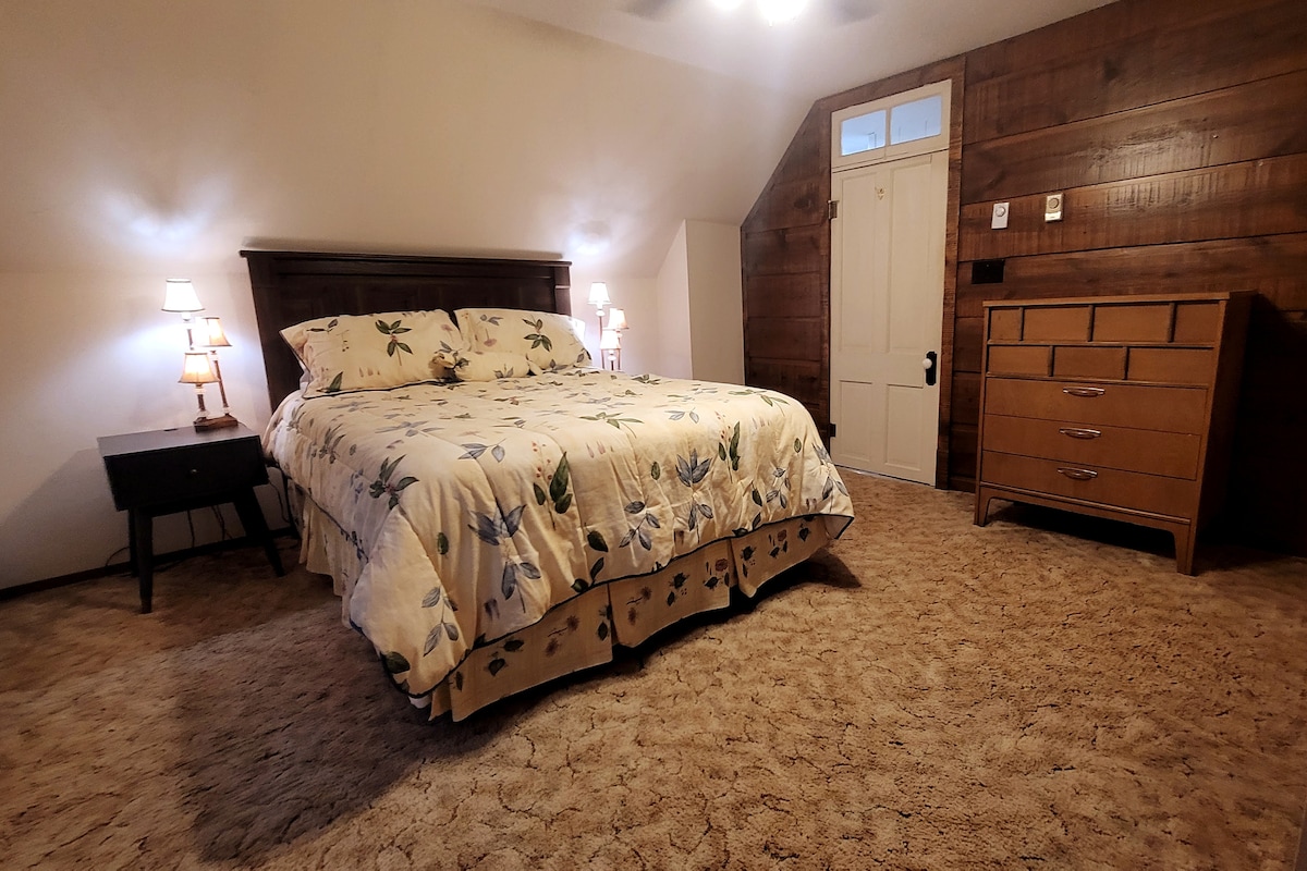 Tämä 140 m²:n, 2+ vuoteen ja 2 kylpyhuoneen karjatila, jossa on business-sviitti, majoittaa 5 vierasta ja sijaitsee halutulla eteläpuolella rauhallisessa naapurustossa. Isossa makuuhuoneessa on king-vuode, kylpyhuone ja vaatehuone. Toisessa makuuhuoneessa on king-vuode. Kolmannessa huoneessa on parisängyt, työpöytä ja nopea WiFi. Olohuone ja keittiö, jossa TV, kaasutakka. Autotalli kahdelle autolle. Terassi, jossa voi syödä ulkona. Aidattu takapiha. Koirat ovat tervetulleita tänne! 5. vieraasta peritään 50 dollarin maksu ja kertaluonteinen 30 dollarin lemmikkimaksu/majoittuminen.
