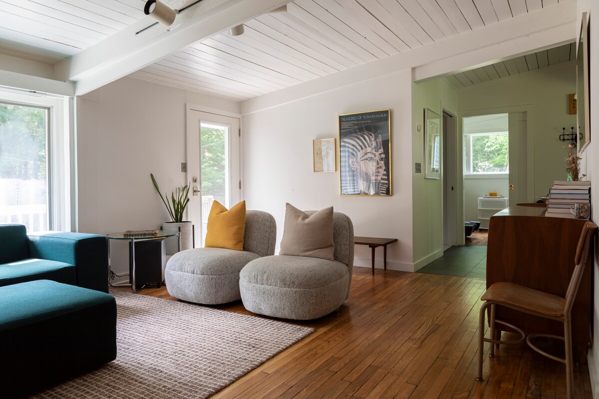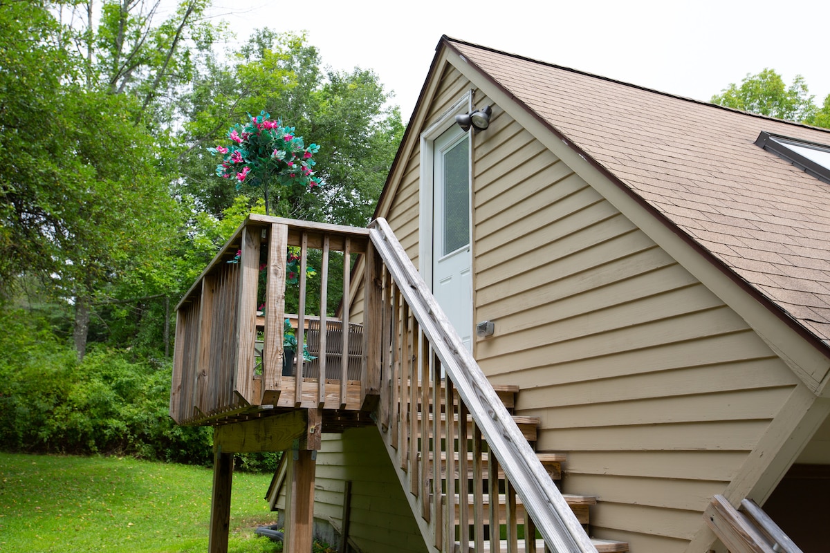 Nauti rauhallisesta (lemmikkiystävällisestä) kohteestamme, joka on vain lyhyen ajomatkan päässä Norfolkin keskustasta. Sopii hyvin ystäville ja/tai perhevierailuille. Lautapelejä, palapelejä ja kirjoja sisällä kaikille; nuotiopaikka ulkona. Etu- ja sivukannet ovat täydellisiä rentoutumiseen. Nauti mahtavista kahviloista, kaupoista ja kulttuurisista herkuista Norfolkissa. Lähellä sijaitseva Ellen Battell Stoeckel Estate isännöi Yalen kesäkamarimusiikkikonserttisarjaa. Se on koti, ei hotelli. Uskon, että pidät tästä!