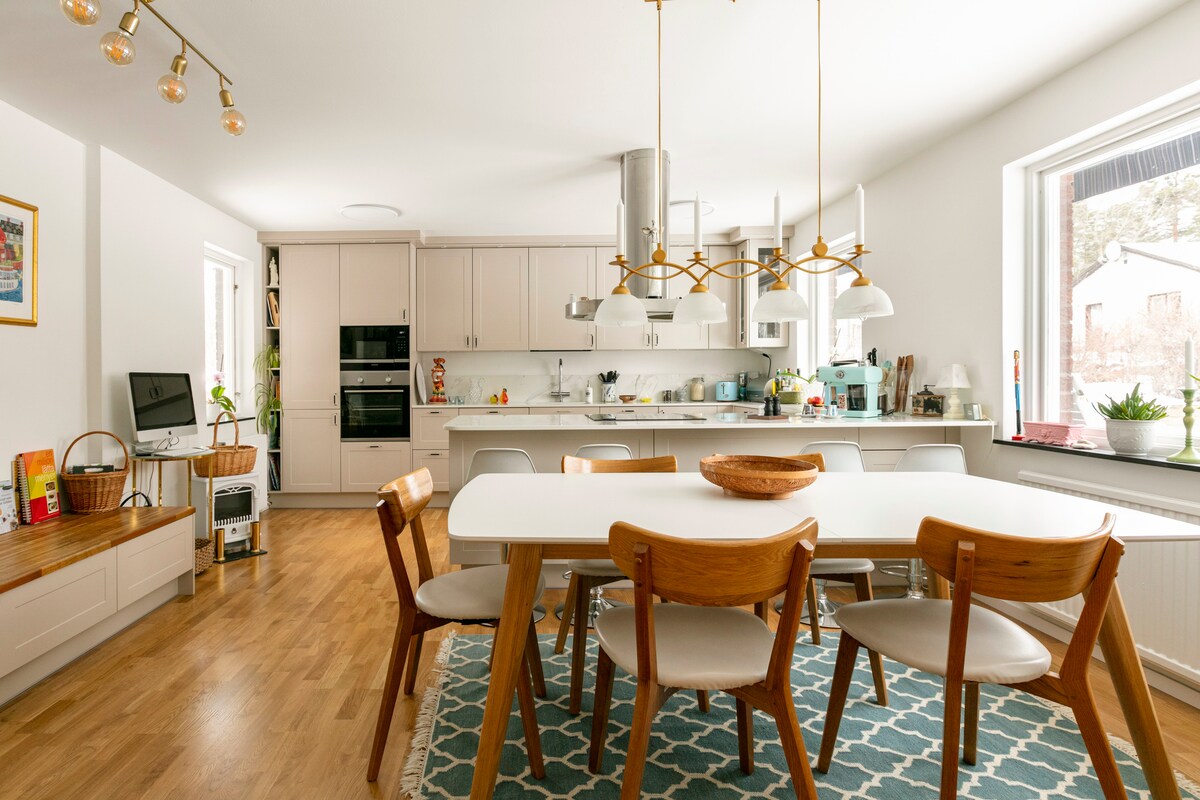 Luo uusia muistoja tässä ainutlaatuisessa, ylellisessä ja perheystävällisessä asunnossa. Kotimme kaipaa perhettä, joka haluaa nauttia ihanasta paikasta kaikkina vuodenaikoina avoimilla ja sosiaalisilla alueilla. Täällä asut parhaassa eteläisessä sijainnissa, jossa on aurinkoa koko päivän, uima-allas (kesällä) ja poreallas (talvella), suuri nurmikko meren rannalla, josta on pääsy laiturille, trampoliini, vene kalastusta varten, kajakit jne. Eristetty, mutta vain 20 minuutin päässä Tukholman keskustasta, jonne pääsee helposti bussilla vain muutaman minuutin päässä talosta. Lähellä Tyrestan luonnonsuojelualuetta!