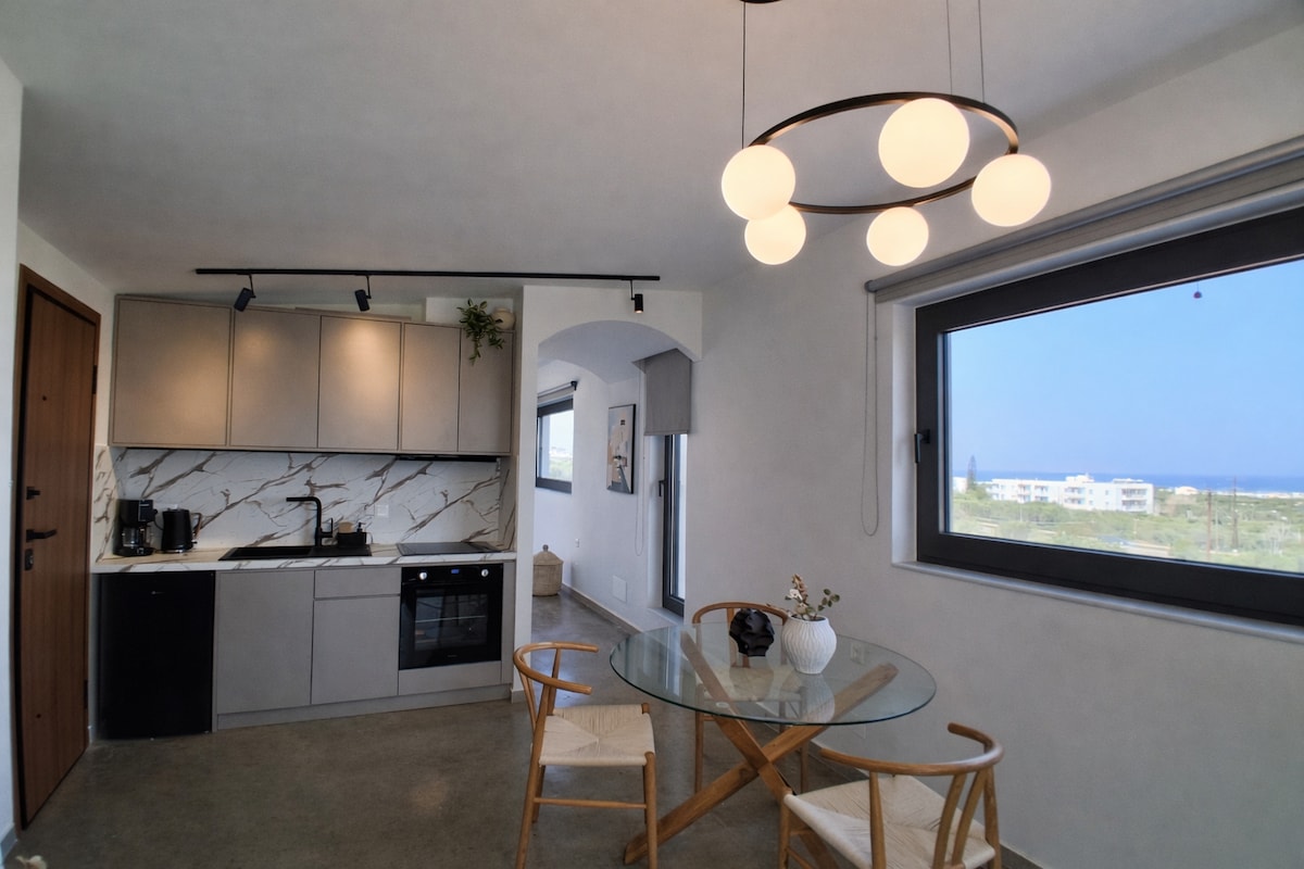 Nauti rauhallisesta lomasta meren äärellä! Herää aamulla ja katsele ainutlaatuista auringonnousua sängystäsi. Rentoudu ulkona jakuzissa, yhteisessä uima-altaassa, terasseilla, kuunnellen aaltojen ääntä ja lintujen lauluja. Näkymät ovat kaikkialta upeat. Edessäsi on Kreetanmeren ääretön sinisyys, ympärilläsi on vaikuttava luonto. Kahdesta olohuoneesta makuuhuoneisiin, ruokailuhuoneeseen, keittiöön, kylpyhuoneisiin, ulkosuihkulle, näkymät ovat kiehtovia.
