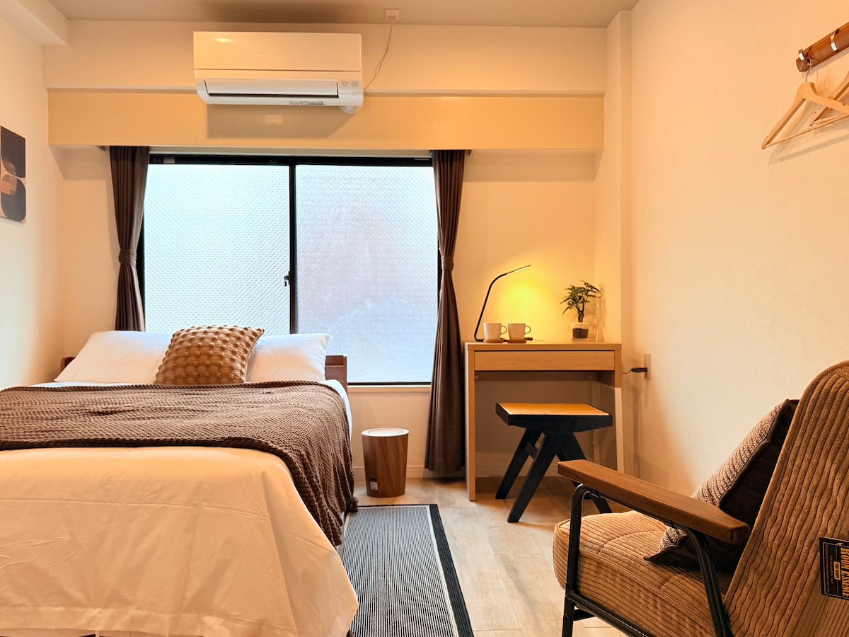 Rauhallinen uusi Japandi Studio|Lähellä JR:ää ja metroa|Pyykinpesu ja kuivaus yhdessä laitteessa|Hissi|Matkatavaroiden säilytys