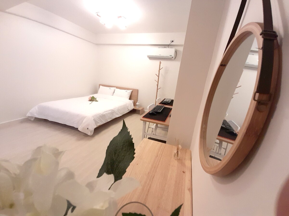 Se on hiljainen ja viihtyisÀ majoituspaikka, joka sijaitsee 7 minuutin kÀvelymatkan pÀÀssÀ Hwangnidan-gilistÀ ja Daereungwonista ja 2 minuutin pÀÀssÀ nopeasta kaupunkien vÀlisestÀ tunnelista. Se sijaitsee erittÀin kÀtevÀssÀ kuljetuspaikassa, joten uskon, ettÀ se on mukava matka mihin tahansa Gyeongjun kulttuurikohteeseen. SiellÀ on olohuone (keittiö), huone, yksi kylpyhuone, ja pesutupassa on pesukone ja kuivausteline. Itsepalvelua varten tarvitsemasi työkalut on valmisteltu. MielestÀni se sopii perheille, ystÀville, liikemiehille ja monelle muulle. Jos vierailet liikematka-autossa, voit myös majoittua pidemmÀn aikaa.
