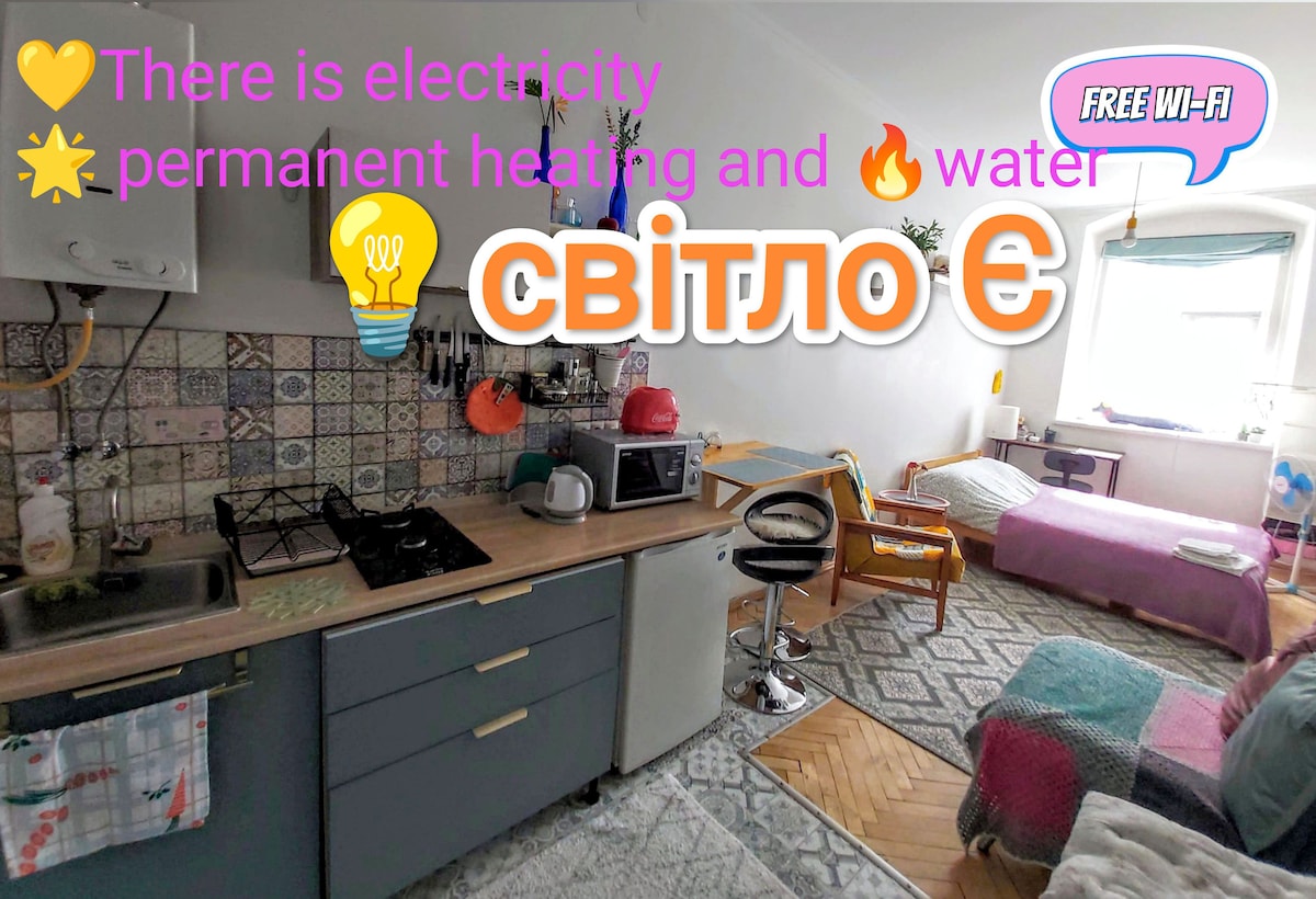 Kutsumme sinut viihtyisään huoneistoomme aivan kaupungin keskustassa oopperatalon lähellä. Hiljainen katu, jolla se sijaitsee, tarjoaa mahdollisuuden rentoutua kaupungin hälinästä ja samalla olla kaikkien tapahtumien keskipisteessä, koska kaikki nähtävyydet ja ravintolat ovat nopean kävelymatkan päässä. Kontaktiton sisäänkirjautuminen (minikassakaappi) on mahdollista mihin vuorokaudenaikaan tahansa. Olemme toimittaneet sinulle kertakäyttöisiä tohveleita, minikosmetiikkaa, teetä, kahvia ja paljon muuta. Toivotamme sinut tervetulleeksi Lviviin.