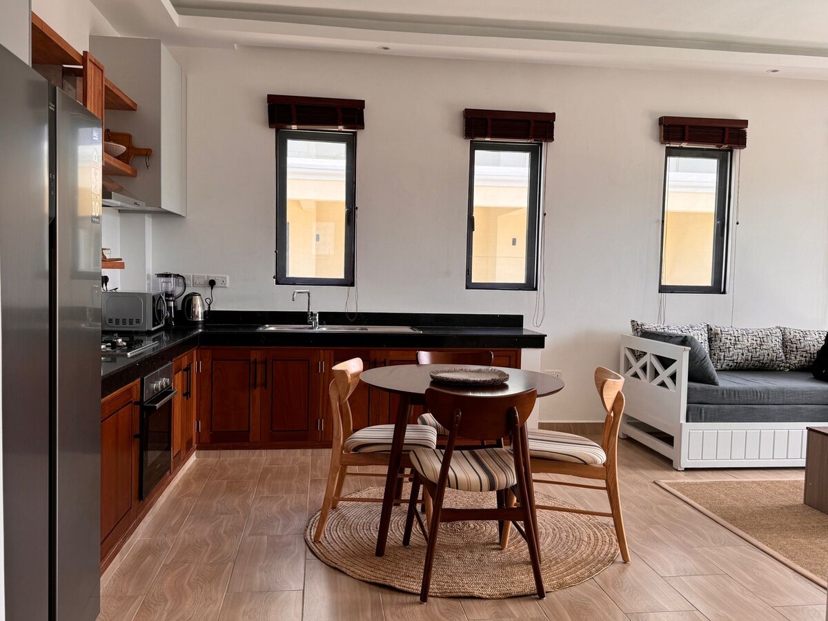 Herää lämpimiin turkooseihin vesiin ja valkoiseen hiekkaan Galu Beachissä, joka on yksi Afrikan rannikon helmistä. Tämä tilava 3. kerroksen huoneisto tarjoaa tyylikkään retriitin pariskunnille, kypsille matkailijoille ja perheille, joissa on vanhempia lapsia. Se yhdistää kodinomaisen mukavuuden lomakeskustyyliseen hemmotteluun. Nauti osittaisista meri- ja vehreistä puutarhanäkymistä yksityisellä parvekkeella, joka on täydellinen paikka aamukahville tai auringonlaskun cocktaileille. Sisustus, avoin suunnittelu ja harkitut yksityiskohdat luovat tunnelman, jotta tunnet olosi kotoisaksi.