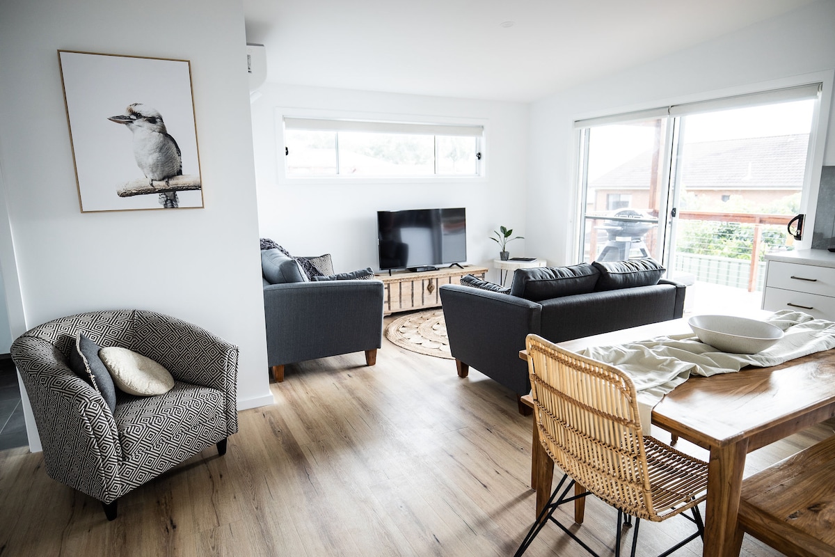 Tervetuloa pieneen lomapaikkaamme rannikolla. Tulemme tänne hidastamaan vauhtia ja nauttimaan Australian parhaista rannoista ja pensaista. Tämä klassikko on kunnostettu, ja kaikki on suunniteltu jakamista ja hyviä aikoja ajatellen. Voit siis odottaa löytäväsi raikkaat liinavaatteet, hyvin varustellun keittiön, leluja lapsille, suuren television sateisille elokuvapäiville... lista jatkuu. Narrawallee-rannan eteläpäässä on 10 minuutin kävelymatka yhdelle kukkulalle, jota Surf Lifesaving vartioi useimpina viikonloppuina.