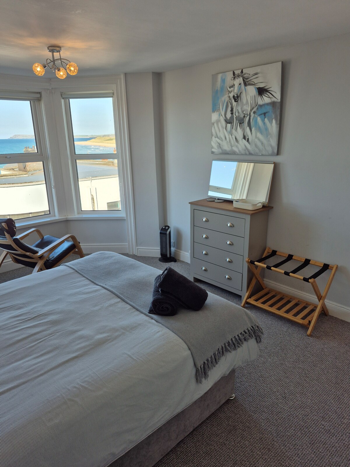 Tyylikkäästi sisustettu 2. kerroksen huoneisto, josta on upeat näkymät Skerriesille ja East Strand Beachille. Keskeinen sijainti Portrushin kirjaston vieressä ja vain 2 minuutin kävelymatka Promenadeen ja East Strand Beachille. Kaikki Portrushissa on kävelyetäisyydellä. Vain 5 minuutin ajomatka Royal Portrush Golf Clubiin ja lähellä kaikkia North Coastin kuuluisia nähtävyyksiä, kuten Giants Causeway, Carrick-a-rede Rope Bridge ja Game of Thrones -paikkoja, kuten BallintoyHarbour ja The Dark Hedges