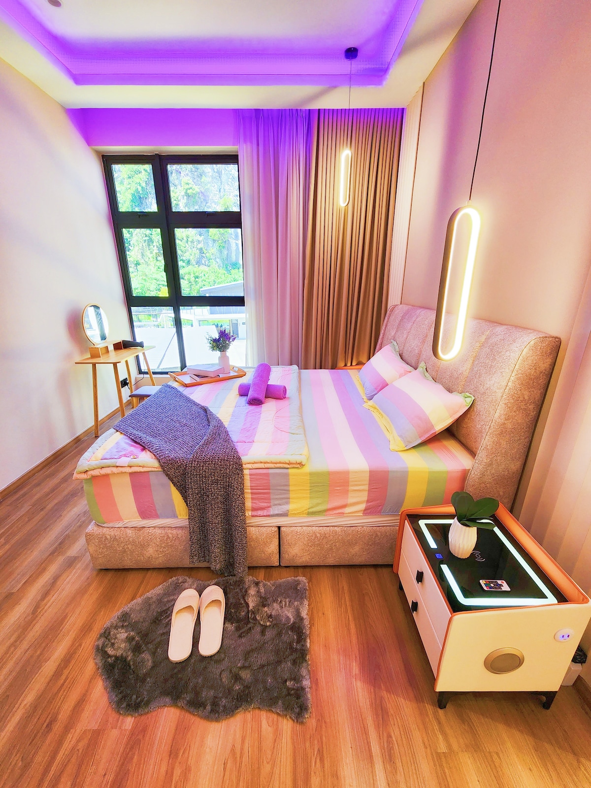 Alpaca Suite @ Sunway Onsen sijaitsee Ipohin itäisen käytävän vilkkaimmassa integroidussa lomakeskuksessa. Se sijaitsee luonnon hienoimmalla purolla ja kukkuloilla. Majoittumisesi meillä: Koko huoneisto, jossa on 2 makuuhuonetta ja 2 kylpyhuonetta, joissa on ilmastointi ja kattotuulettimet. 2 makuuhuonetta (kaksi queen-size-vuodetta ja kaksi super yhden hengen vuodetta) 2 kylpyhuonetta, joissa on vedenlämmittimen suihku, sampoo ja vartalonpesu 2 pysäköintipaikkaa
