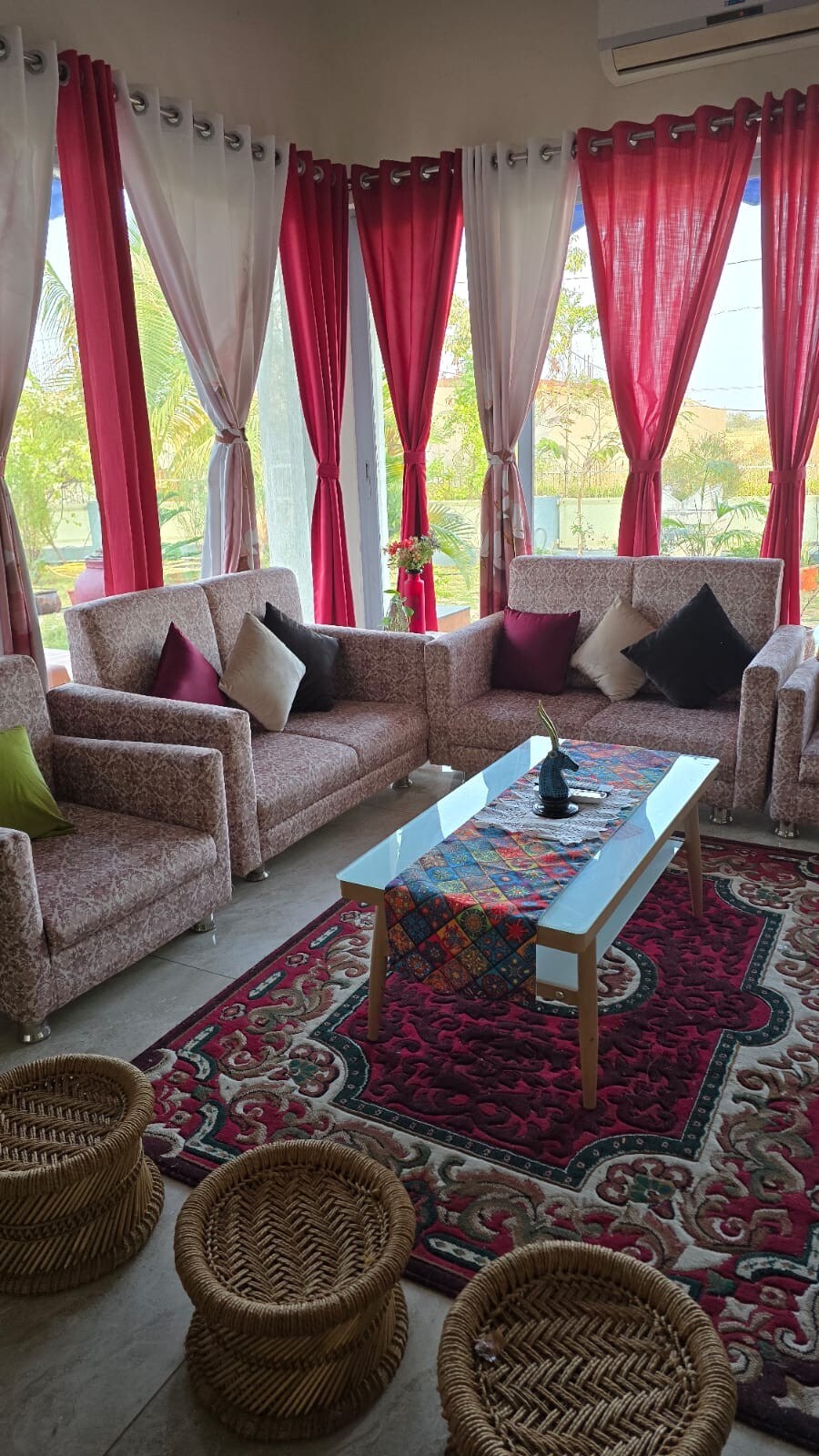 Amantran Village Retreat – Where Village Serenity Meets Modern Comfort Koe kauniisti maisemoidut nurmikot ja neljä täysin kalustettua makuuhuonetta, joissa on modernit mukavuudet ja pesuhuoneet. Uppoudu maaseutuelämän viehätykseen aidolla kylätyylisellä arkkitehtuurilla ja sisustuksella. Nauti luomuvihanneksista ja eksoottisista hedelmistä. Hengitä raikasta, koskematonta ilmaa rauhallisessa ja hiljaisessa ympäristössä, joten se on täydellinen pakopaikka rentoutua ja luoda yhteys luontoon.