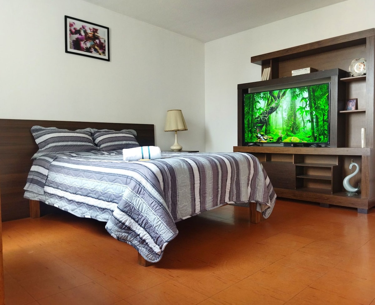 Nauti uudesta ja viihtyisästä huoneistosta rauhallisella Cayman alueella, joka sijaitsee vain 10 minuutin päässä Arequipan keskustasta. Siinä on huone queen-vuoteella, täysin varusteltu kylpyhuone ja moderni oleskelutila, jossa on olohuone ja keittokomero, täydellinen rentoutumiseen. Parvekkeelta on upeat näkymät majesteettiselle Misti-tulivuorelle ja vasemmalla olevalle mahtavalle Chachani-tulivuorelle. Ihanteellinen lyhyisiin oleskeluihin, joko työhön tai matkailuun, ja kaikki mukavuudet, jotka saavat sinut tuntemaan olosi kotoisaksi.