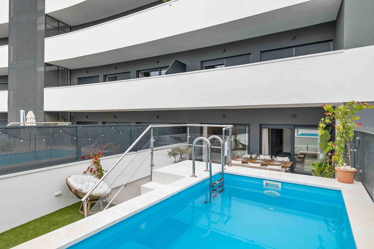 Bright Property Frontline beach penthouse in town center private roof&hotub