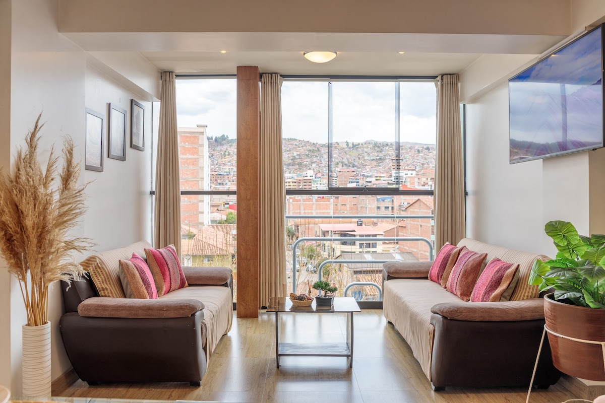 ✨ Täydellinen tukikohta Cuscon ja Machu Picchun tutkimiseen ✨ Tervetuloa! Tämä moderni huoneisto 9. kerroksessa tarjoaa upeat näkymät Andien vuorille, mukavan tunnelman ja strategisen sijainnin, joka on täydellinen matkailijoille, jotka haluavat nähdä Cuscon parhaat puolet. Sijaitsee rauhallisella ja turvallisella alueella Wanchaqissa, vain 15 minuutin ajomatkan päässä historiallisesta keskustasta, ja sinne on helppo pääsy takseilla, julkisilla liikennevälineillä ja retkillä Machu Picchuun, Pyhään laaksoon, 7 Colors Mountainiin ja muihin kohteisiin.