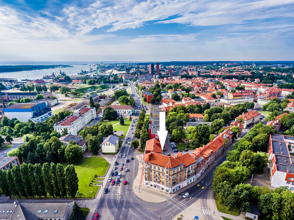Tilava, äskettäin remontoitu, viihtyisä ja puhdas 108 neliömetrin huoneisto sijaitsee kaupungin keskiosassa vanhassa historiallisessa rakennuksessa, jota ympäröivät arvokkaat historialliset talot saksalaisessa arkkitehtuurissa. Huoneisto sijaitsee noin 15–20 minuutin kävelymatkan päässä vanhasta kaupungista, bussi- ja rautatieasemista, 5 minuutin päässä huvipuistosta ja pyöräreiteistä ja 10 minuutin päässä ostoskeskuksesta. Melnragen ranta on noin 20 minuutin kävelymatkan metsän poikki tai 5 minuutin ajomatkan päässä.