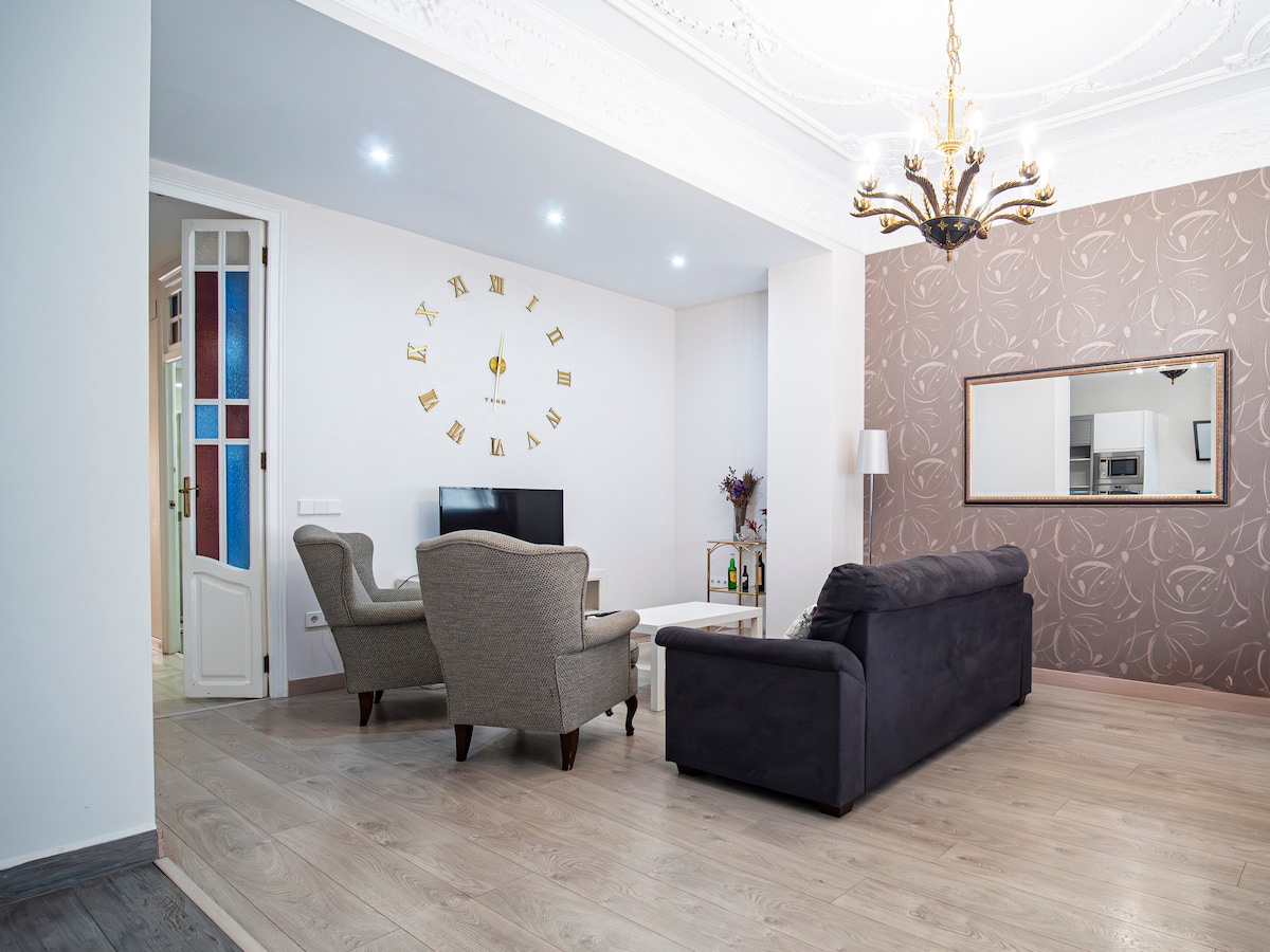 Tervetuloa Valenciaan! Nauti unohtumattomasta majoituksesta tilavassa 94 m²:n huoneistossamme, joka sijaitsee strategisesti dynaamisella Quatre Carreresin alueella. Ihanteellinen perheille, ryhmille tai liikematkailijoille, jotka etsivät mukavuutta ja erinomaisia yhteyksiä kaupungin tärkeimpiin paikkoihin. Huoneisto sijaitsee hiljaisessa asuinalueella, jossa on kaksi uima-allasta (lasten), pieni kuntosali ja mahdollisuus pysäköidä.