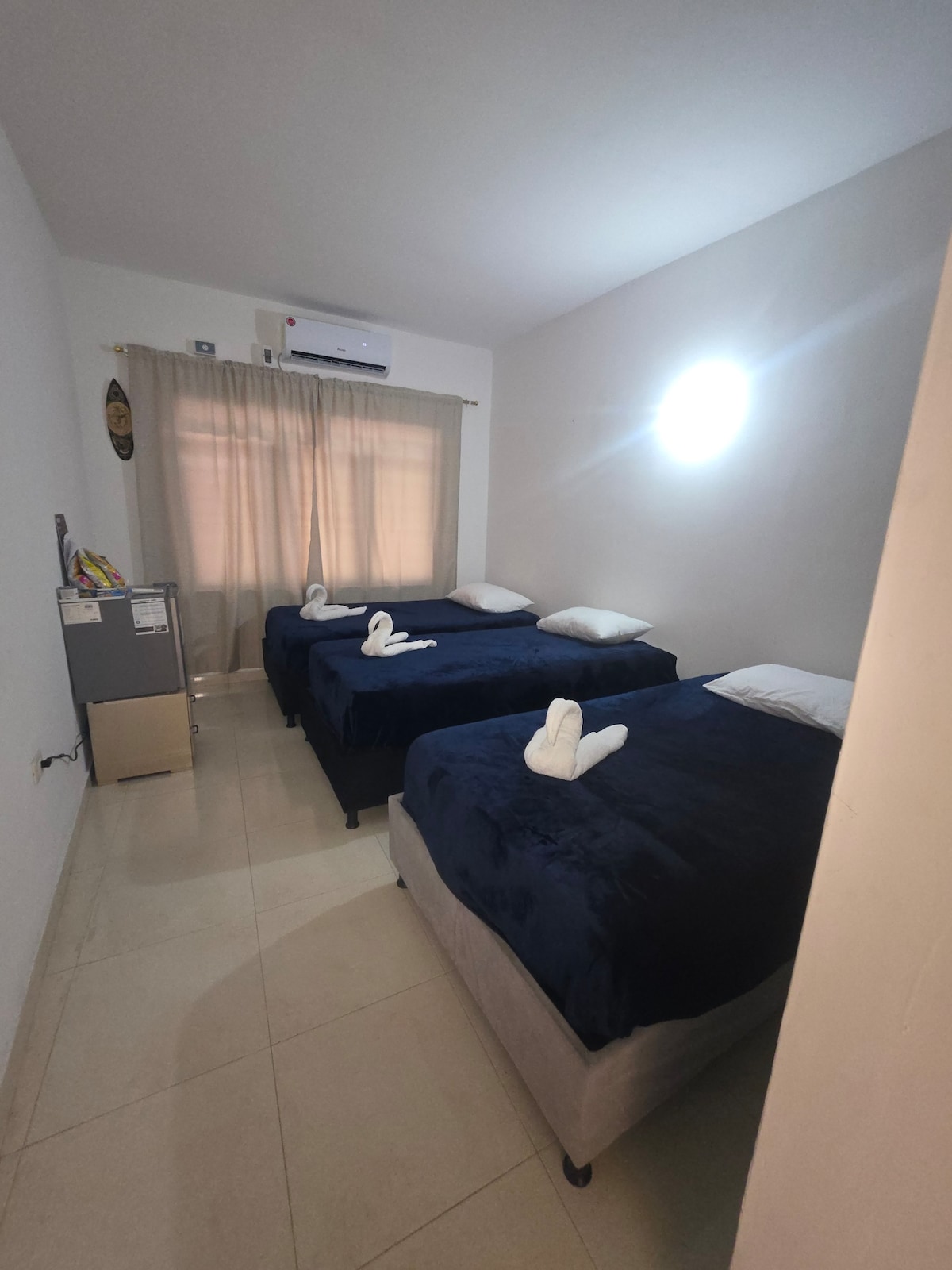 Habitación privadas con 1 cama doble (1.4m ancho), aire acondicionado y baño interno. Espacios sencillos y funcionales, sin ventanas, ideales para descansar cómodamente después de un día de actividades. Servicios incluidos ✔ Aire acondicionado ✔ Cama doble ✔ Televisión ✔ Wifi con buena señal ✔ Baño privado ✔ Espacio práctico para una estadía tranquila Ideal para: Viajeros que buscan un alojamiento básico, cómodo y bien ubicado, sin lujos.