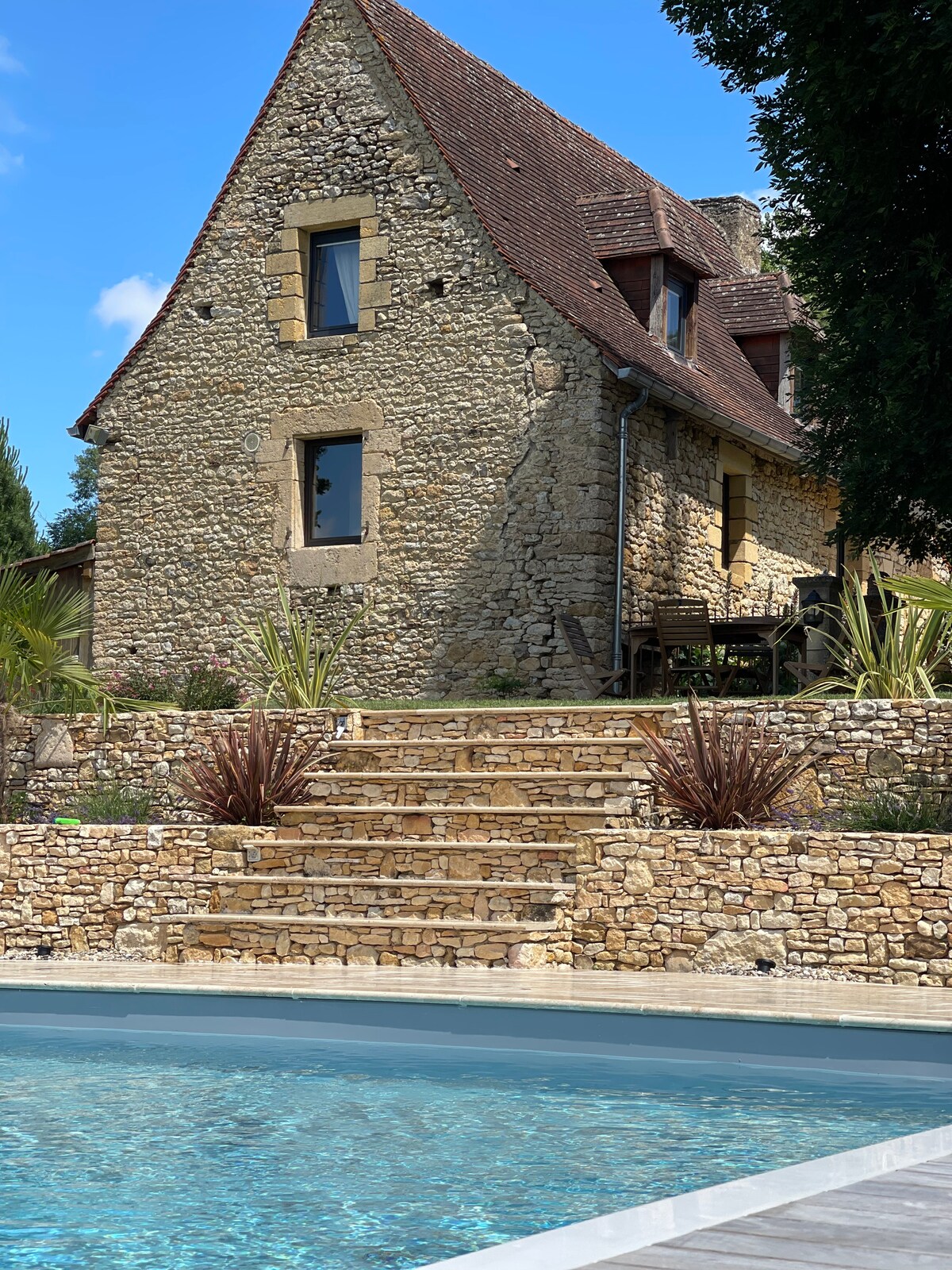 Kaunis "Le Petit Chateau" La Tuilerie de la Roussie -kohteessa, joka on alun perin rakennettu vuonna 1551, on kokonaan sinun nautittavaksesi. Ihanteellisesti sijaitsee Vézere-joen rannalla esihistoriallisella alueella, joka tunnetaan nimellä "Vallée de L'Homme" kiehtovan Les Eyziesin kaupungin ja Le Buguen markkinakaupungin välillä. Alueen tutkimiseen tarjoamme ILMAISEN maastopyörien ja kajakin* käytön, ja sinulla on suora pääsy joelle ja 12 km:n pyöräreitille. Tai yksinkertaisesti rentoutua lämmitetyn uima-altaan ympärillä luksusaurinkotuoleilla.