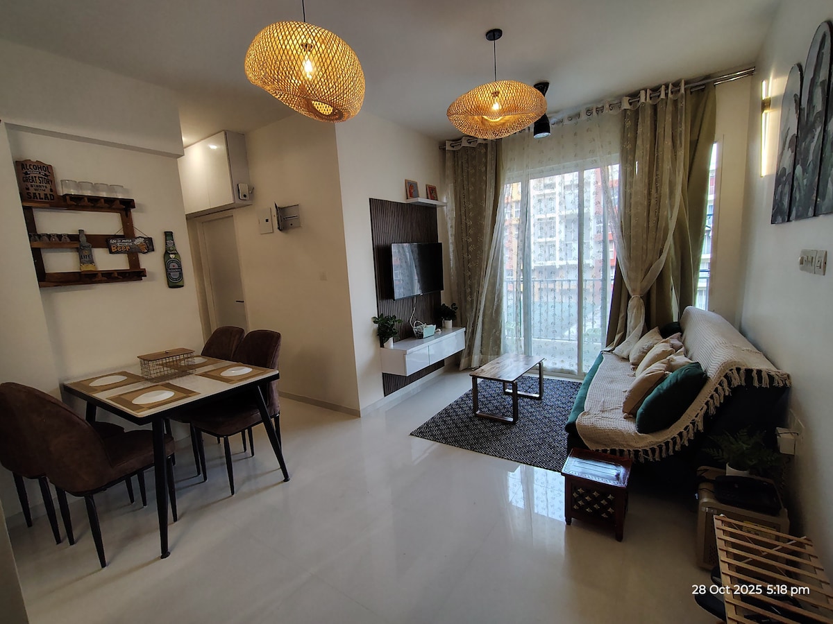Kick back and relax in this calm, stylish space designed for 2 with all modern amenities to easy your holiday. Located just 8 min from Goa's Dabolim airport, the apartment nests in a residential society with 24 hours security. 3 beaches are in a radius of a 15 min drive. Amenities provided are: 2 split AC each in Bedroom and Living Room, LED TV 42 inch, Kent RO, Fridge, Bosh Fully Washing Machine, Hair Dryer, Tea Kettle, Toaster, Electric Rice Cooker, Induction Stove, Crockery and a geyser.