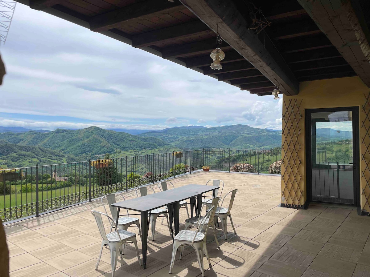 Upea remontoitu huvila upotettu kukkuloilla Reggio Emilia, saatavilla 400 metriä talon kahdessa kerroksessa ja kaunis panoraamaterassi 80 neliömetriä, jossa voit järjestää illallisia ja grillijuhlia, ympäri huvila sijaitsee puutarha yli 1000 neliömetriä, jossa voit rentoutua. Kaikki saatavilla olevat mukavuudet, mukaan lukien toisen kerroksen poreallas, josta on panoraamanäkymät. Katettu yksityinen pysäköinti. Helikopterin laskeutumis- ja lentoonlähtöasema. Täydellinen alue kävelylle