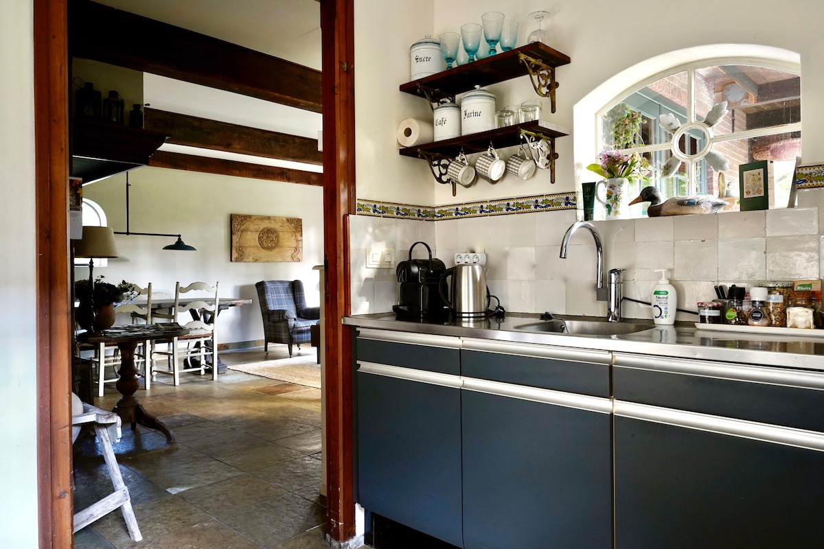 Täydellinen pakopaikka! Mökki sijaitsee pienellä perhetilalla, kauniissa metsässä, aivan kylän ulkopuolella (vain 600 metrin päässä ), Alankomaiden suurimmalla luontoalueella, jonka kynnyksellä on ikivanhoja metsiä ja laajoja kanerkapelloja. Talo on tilava, mutta myös viihtyisä ja mukava, ja siellä on ylellinen kylpyhuone, täydellinen keittiö, puulämmitteinen liesi ja kaikki muu tarvitsemasi mukavuus. Jos olet onnekas, voit joskus kuulla susien ulvontaa...