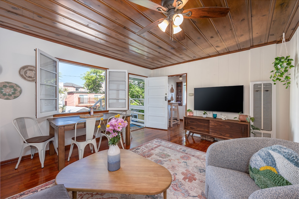 Hiljattain remontoitu Kalifornian lainelautailubungalow sijaitsee Del Reyn sydämessä Venice Beachin ja Culver Cityn välissä. Kävele paikalliseen kahvilaan, hyppää kaupunkipyöriin ja lähde 15 minuutin pyöräretkelle rannalle, syö alfrescoa terassilla ja nauti LA: n öistä takapihan nuotiopaikalla. Ilmastointi, sisä- ja ulkoruokailu, ammattitason keittiö, kaksi mukavaa makuuhuonetta, moderni sisustus ja L2 E/V -lataus. Vain 15 minuuttia LAX + SoFi -stadionille, jossa on pysäköinti paikan päällä.
