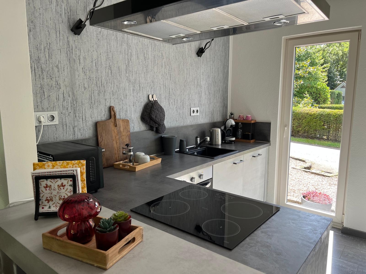 Yksityinen bungalow (75 m2) metsäisellä alueella, jossa on ilmainen pysäköintitila. Kaunis tilava olohuone, jossa on televisio ja ilmainen wifi, täysin varustettu keittiö, jossa on jääkaappi, Nespresso, liesi ja kaikki ruoanlaittovälineet. Kylpyhuone, jossa on ylellinen suihku ja erillinen wc, makuuhuone, jossa on parivuode. Kohteessa on hyödyllinen sauna (pientä maksua vastaan). Sopii hyvin lomalle, mutta myös liikematkailijalle. Deurnen keskusta 20 minuutin kävelymatkan päässä. NS-asema 3,2 km.