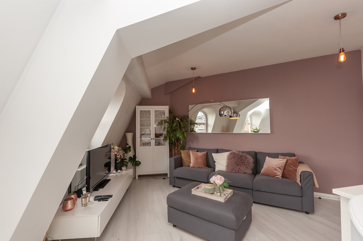 Tyylikäs loft keskellä kaupunkia, jossa on paljaita palkkeja, luksusteknologiaa ja ainutlaatuisia yksityiskohtia. Nauti 55 tuuman Sky Glass -televisiosta, jossa on täysi Sky, Netflix ja paljon muuta, 27 tuuman 5K iMac -työasemasta ja makeiskaupasta kaikenikäisille. Majoitustilaa jopa 5 hengelle, mukavat vuoteet, täysin varustettu keittiö, uusi kylpyhuone ja nopea wifi. Kävele kauppoihin, ravintoloihin ja nähtävyyksiin. Pysäköintialue 30 sekunnin päässä. Toinen kerros (vain portaat). Itsepalvelusisäänkirjautuminen. Eläväinen alue – kevyesti nukkuvat kuulevat kaupunkimeluja. Majoittumisen puolivälin tarkistus koskee yli 3 yön majoituksia.