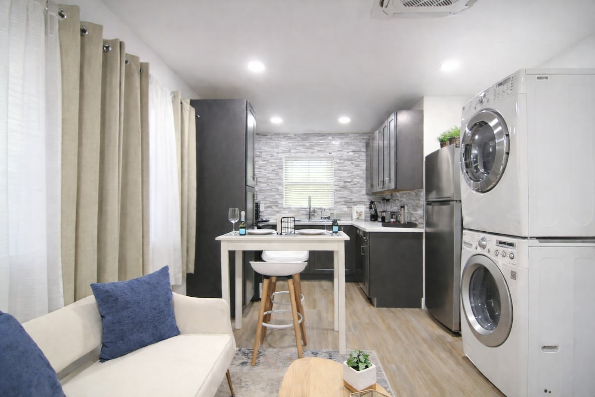 UUTTA! Skandinaavismoderni talo, jossa on 2 makuuhuonetta, 2 queen-kokoista muistivaahtosänkyä, 10 minuutin päässä LAX-lentokentältä, Sofi Stadiumilta, Intuitilta ja Kia Forumilta, museoilta, rannoilta, pyörätuolin käyttäjille sopiva, esteetön/portaaton sisäänkäynti ja portaaton suihku, 2 korttelin päässä pääteitä 405 Freeway, täysin varustettu keittiö, jossa on kaikki keittiömukavuudet, jotta voit valmistaa oman ateriasi ilman, että sinun tarvitsee lähteä, koko huoneisto/huvila, jossa on täysi yksityisyys ja yksityinen sisäänkäynti, 55 tuuman litteä näyttö, erittäin hiljainen perheympäristö, sopii erinomaisesti perheille tai hiljaiseksi työpaikaksi.