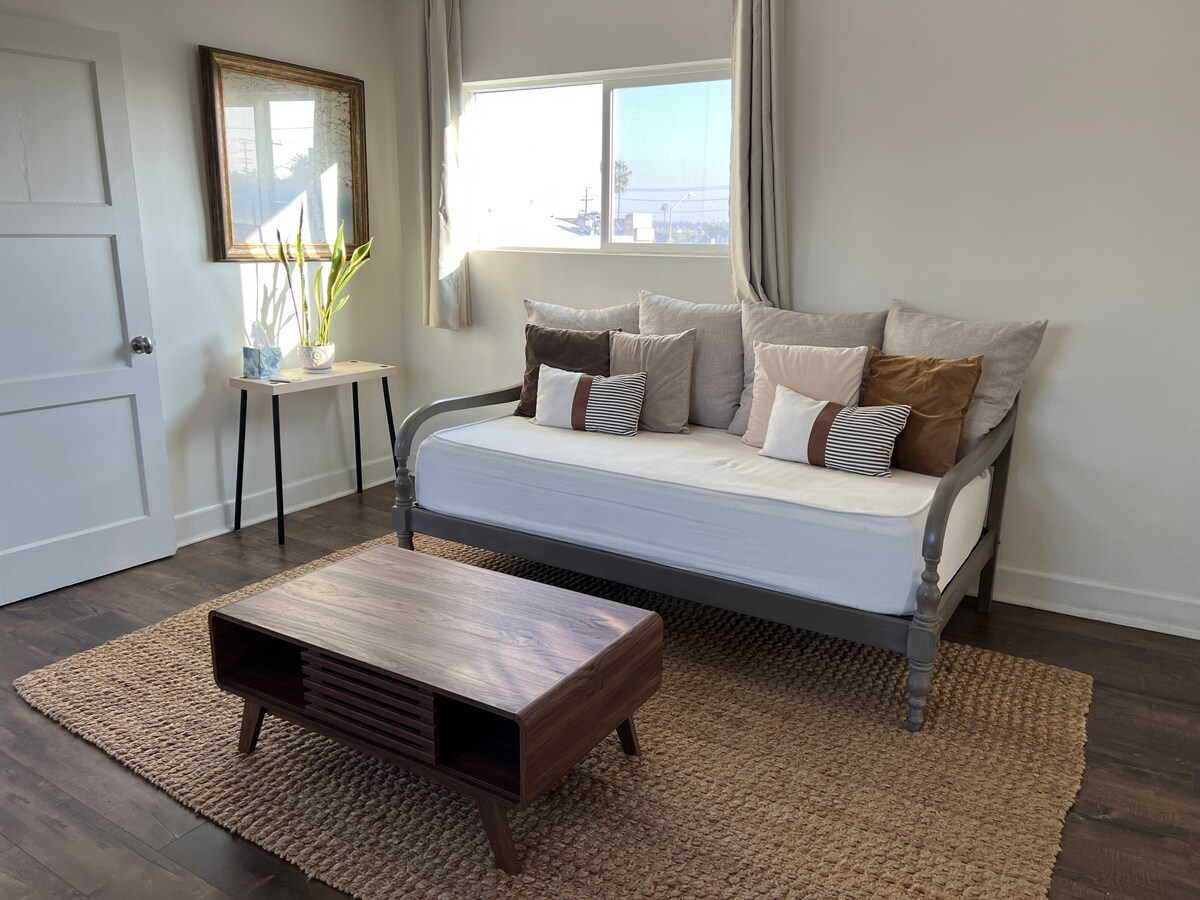 Tulet ihastumaan tähän yksityiseen vierasmajaan ja avoimeen tilaan, jossa on Cali-king-vuode, vuodesohva, oma kylpyhuone ja 55 tuuman litteä näyttö. Nauti ulkona olevasta oleskelutilasta, jossa on nuotiopaikka ja jota ympäröivät vehreys ja hedelmäpuut. Vain minuuttien päässä LAXista, SOFI Stadiumista, Hollywood Parkista ja Westfieldin ostoskeskuksesta. Hyvin lähellä Marina Del Reytä, Venice Beachiä, Santa Monicaa ja alueen monia ravintoloita ja kauppoja. Lähellä on katupysäköinti ja julkinen liikenne