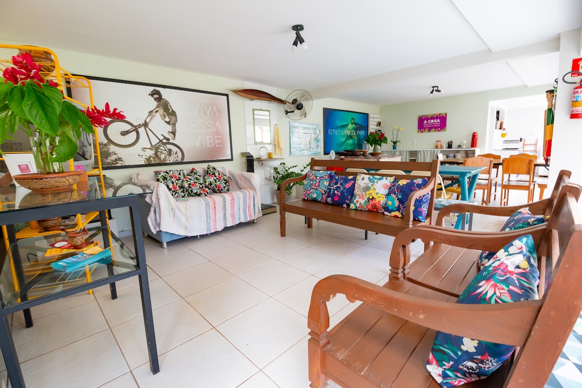 Pyrimme tarjoamaan vieraillemme talon, jossa on rikas viheralue, Morro do Morenon juurella ja muutaman metrin päässä Praia da Costasta. Ihanteellinen niille, jotka pitävät urheilusta, koska olemme alueella, jolla harjoitellaan (patikointi, patikointi, ilmainen lentäminen ja abseiling); ja meillä on ulkouima-allas ja suihku. Alueellamme on pysäköintimahdollisuus. - Yhden hengen huone, jossa on parivuode enintään kahdelle vieraalle, tuuletin, älytelevisio, wifi, jaettu wc ja aamiainen.