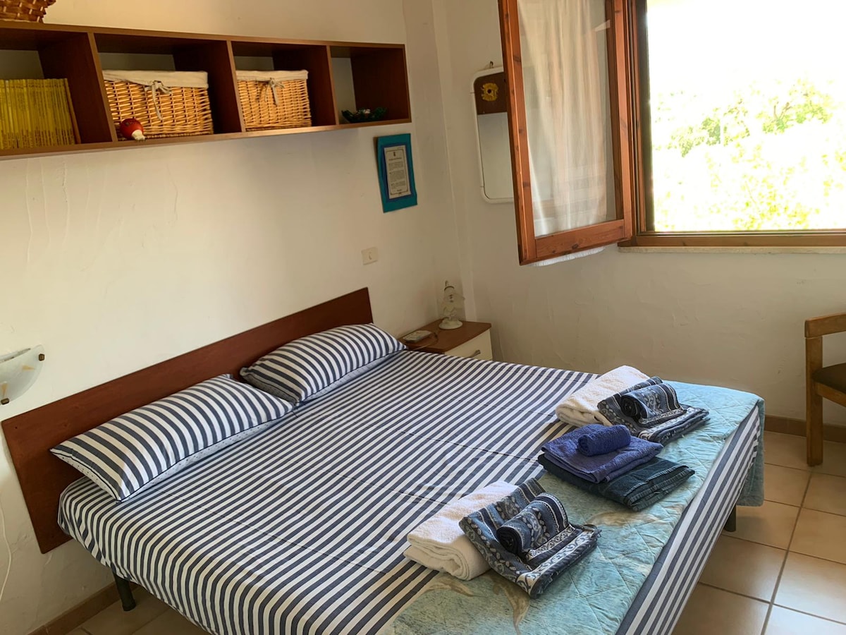 RAUHAN, LUONNON JA MUKAVUUDEN VÄLILLÄ PARATIISIN KULMASSA... Talo sijaitsee viehättävän paritalon ensimmäisessä kerroksessa, josta on henkeäsalpaava näkymä kukkulalle, rauhallisella paikalla vain 10 minuutin kävelymatkan päässä Genn'e Marin rannalta ja 15 minuutin kävelymatkan päässä Cann'e Sisan ja Cala Delfinon rannalta.