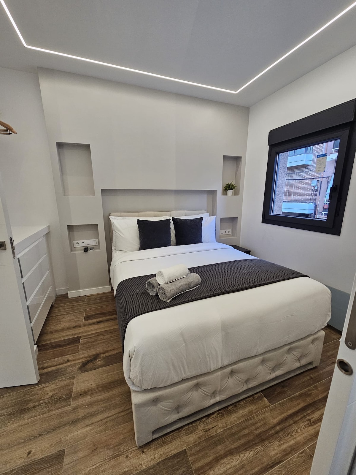 JUBI-huoneisto sijaitsee ALUCHESSA, yhdellä alueista, joilla on parhaat yhteydet pääkaupungin sydämeen! Se on 40 m² suuruinen huone, joka on suunniteltu mukavuuttasi varten ja jossa on kaikki mitä tarvitset tunteaksesi olosi kotoisaksi. Se sijaitsee 600 metrin päässä EUGENIA DE MONTIJO -metroasemalta, ja 15 minuutissa saavut matkailukeskukseen. Pääsy erilliselle kadulle ilman portaita ja suuri valikoima kauppoja ja ravintoloita ympärillä! Haluamme huolehtia ja hemmotella vieraitamme, ja otamme sinut mielellämme vastaan!